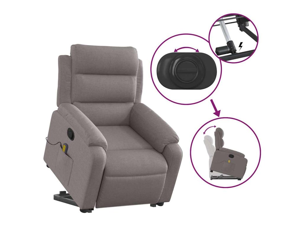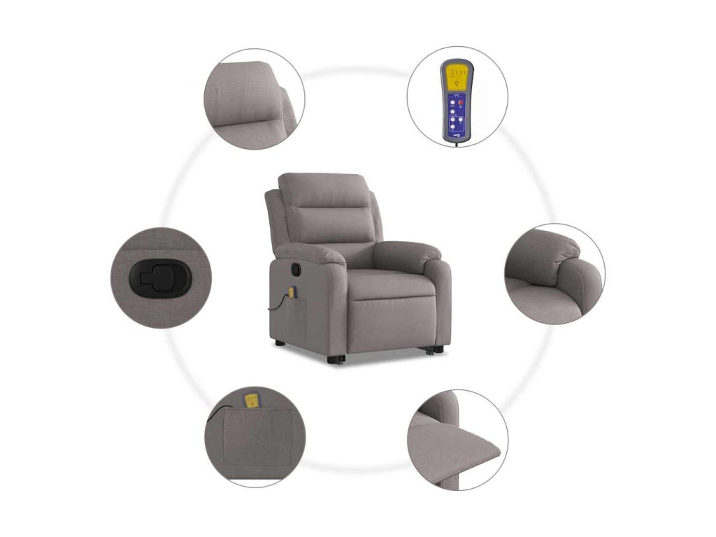 Multidom Zdvíhacie a sklápacie masážne kreslo sivohnedé látka