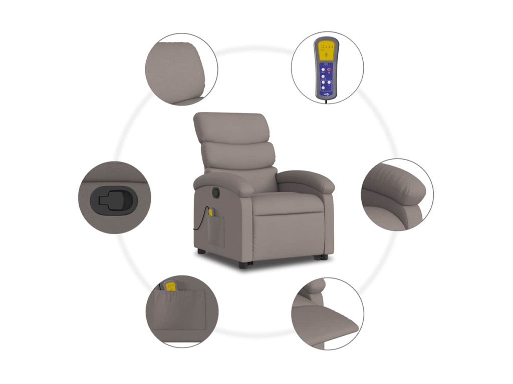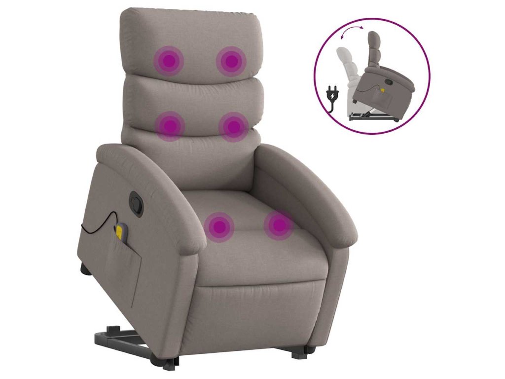 Multidom Zdvíhacie a sklápacie masážne kreslo sivohnedé látka