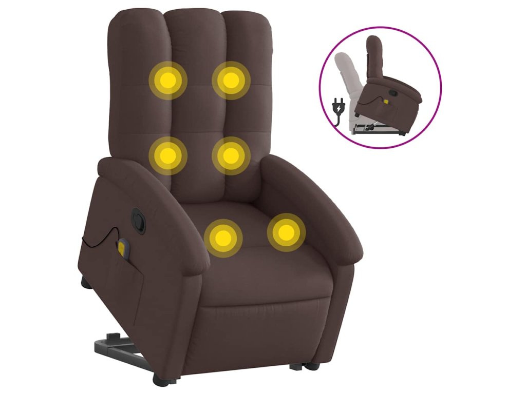 Multidom Zdvíhacie a sklápacie masážne kreslo tmavohnedé látkové