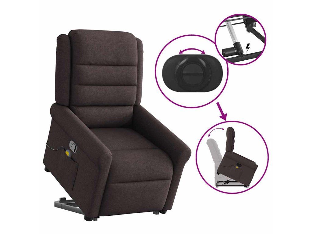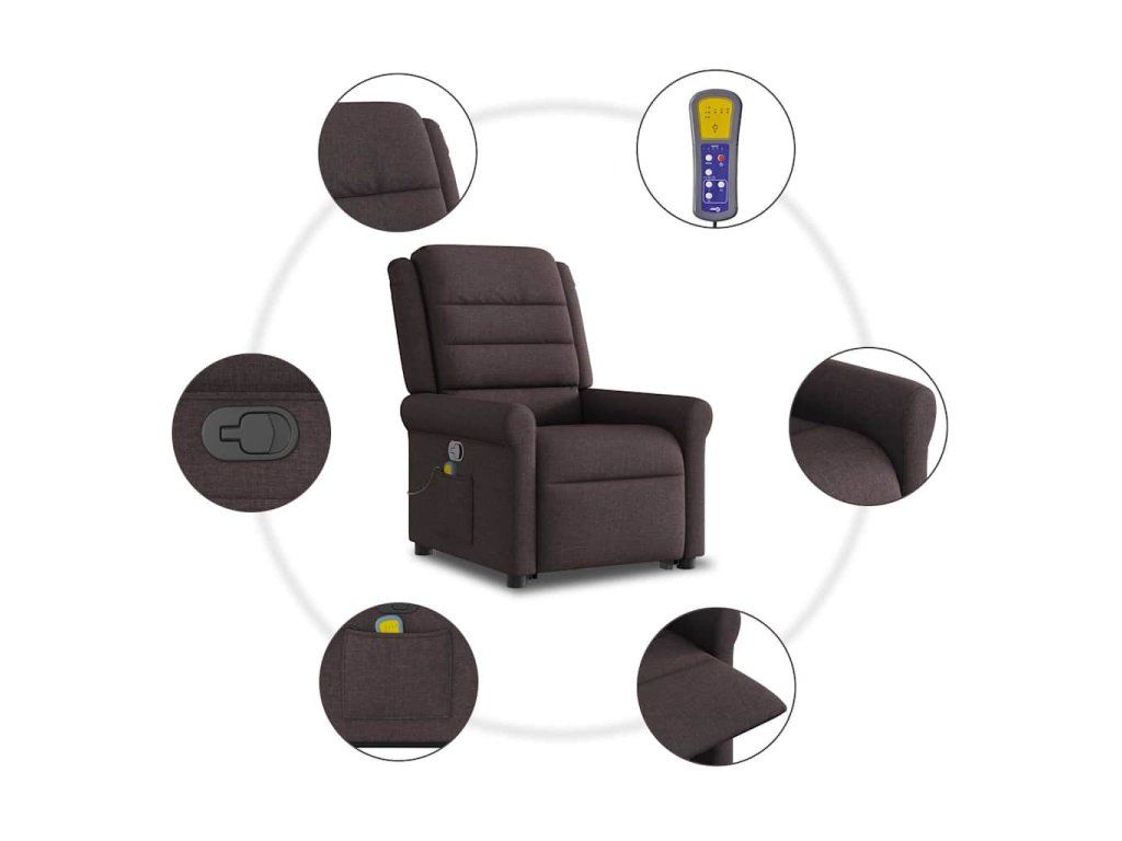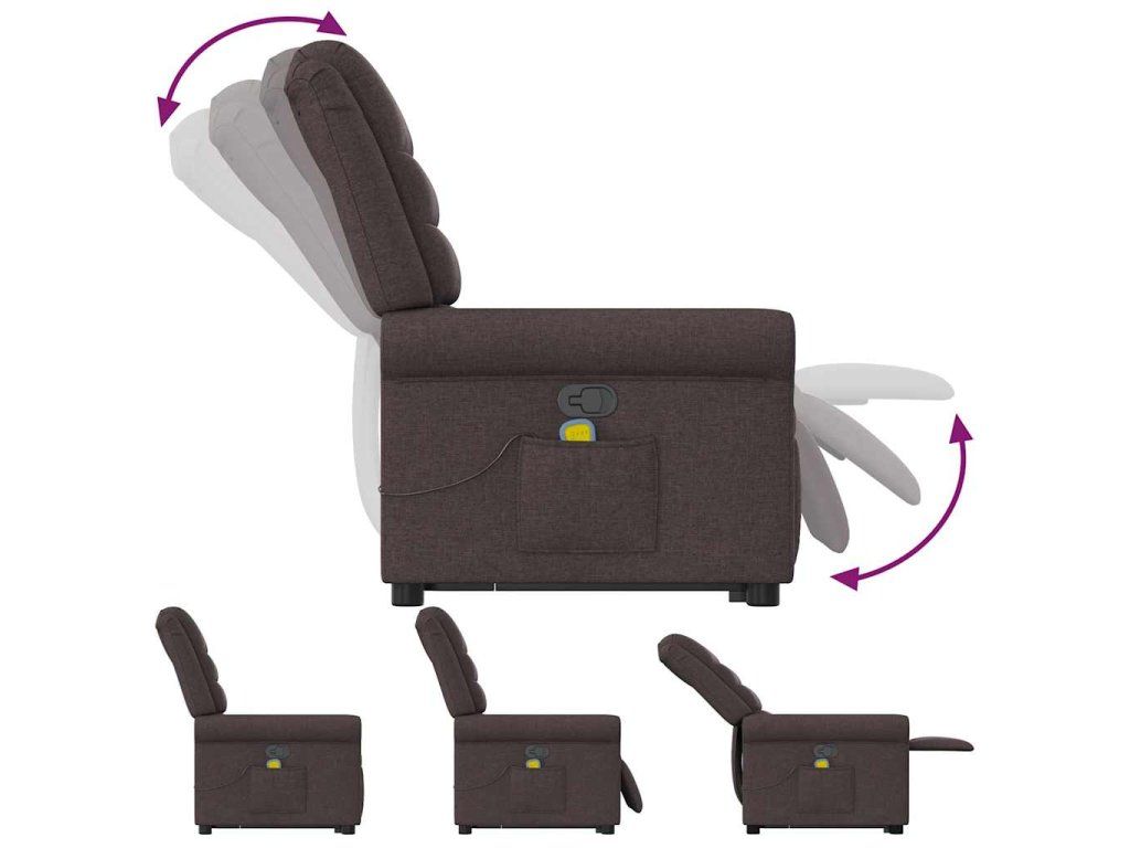 Multidom Zdvíhacie a sklápacie masážne kreslo tmavohnedé látkové