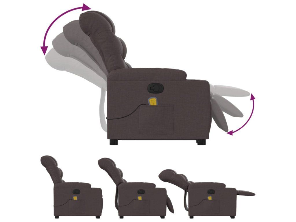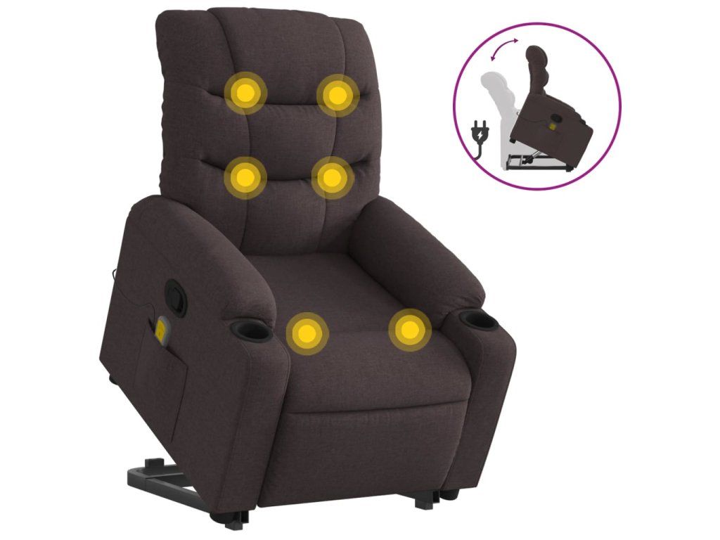 Multidom Zdvíhacie a sklápacie masážne kreslo tmavohnedé látkové
