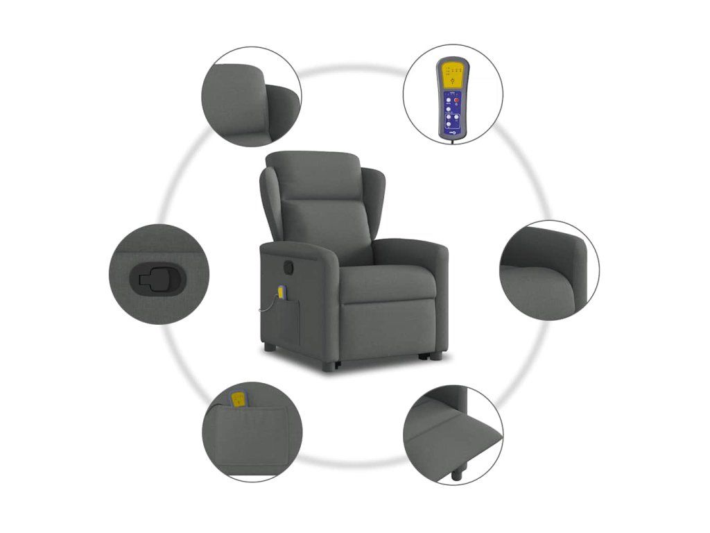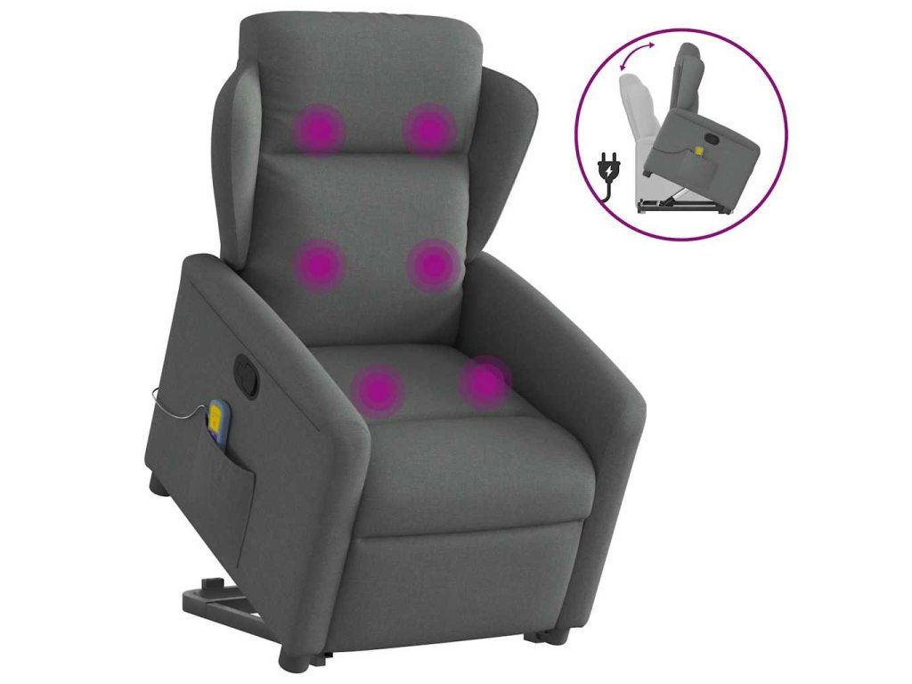 Multidom Zdvíhacie a sklápacie masážne kreslo tmavosivé látka