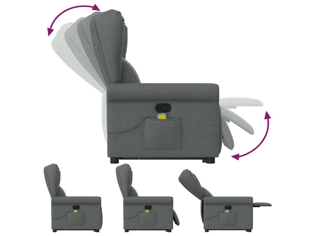 Multidom Zdvíhacie a sklápacie masážne kreslo tmavosivé látka