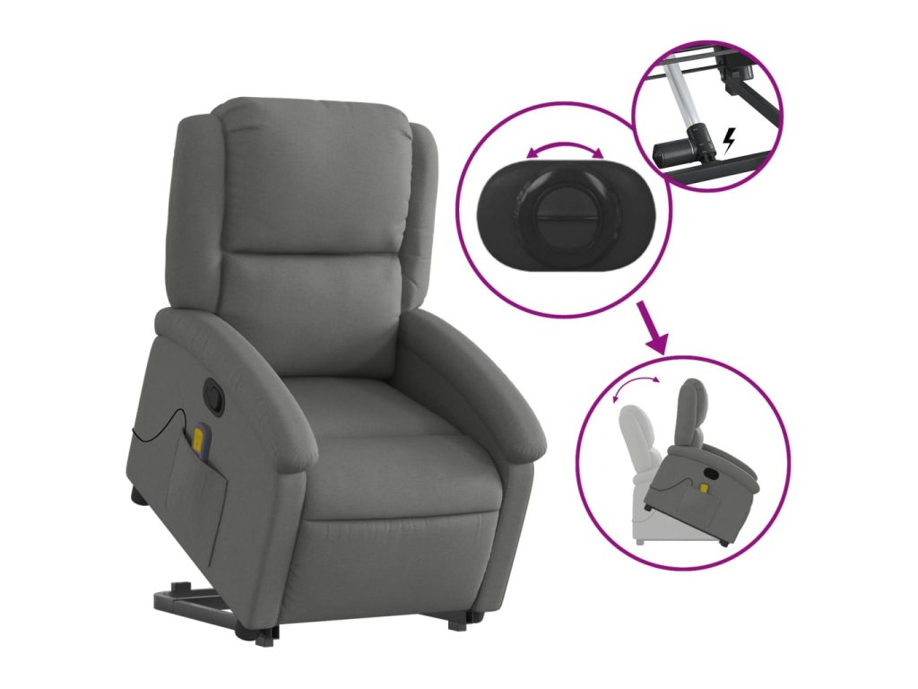 Multidom Zdvíhacie a sklápacie masážne kreslo tmavosivé látka