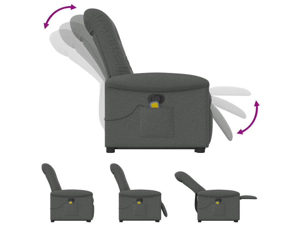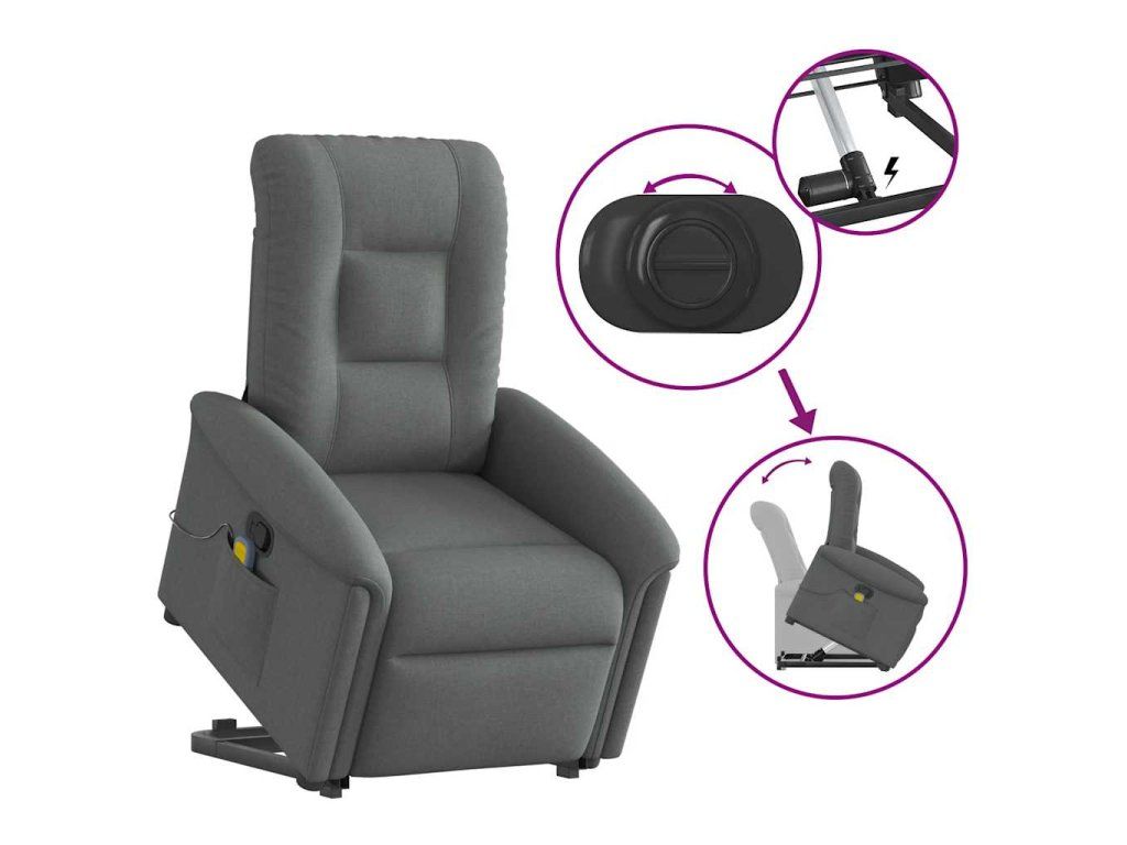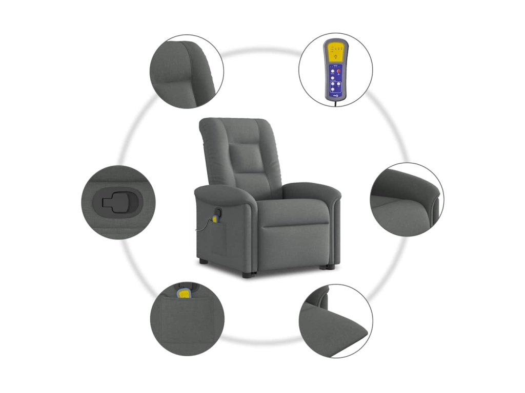 Multidom Zdvíhacie a sklápacie masážne kreslo tmavosivé látka