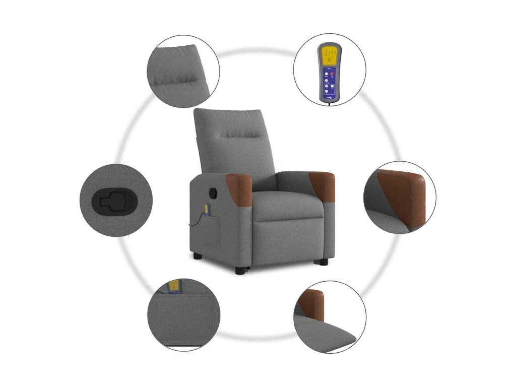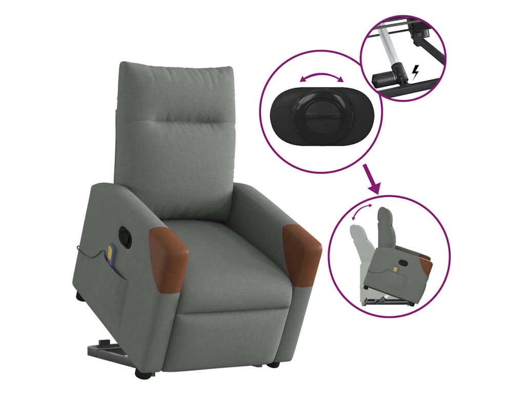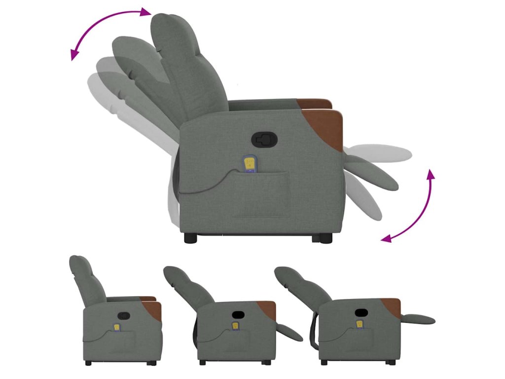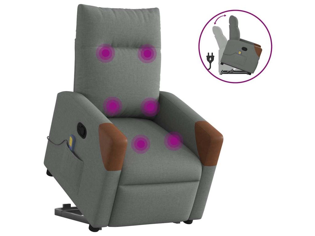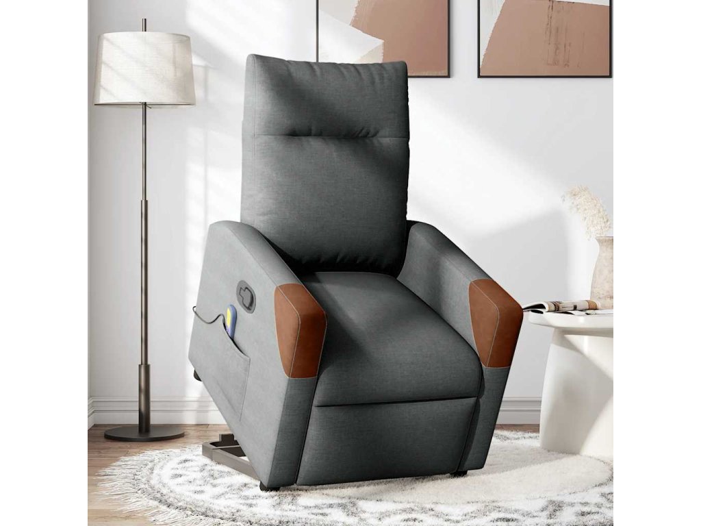 Multidom Zdvíhacie a sklápacie masážne kreslo tmavosivé látka