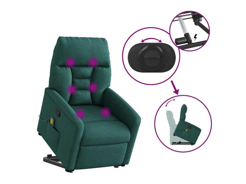 Multidom Zdvíhacie a sklápacie masážne kreslo tmavozelené látka