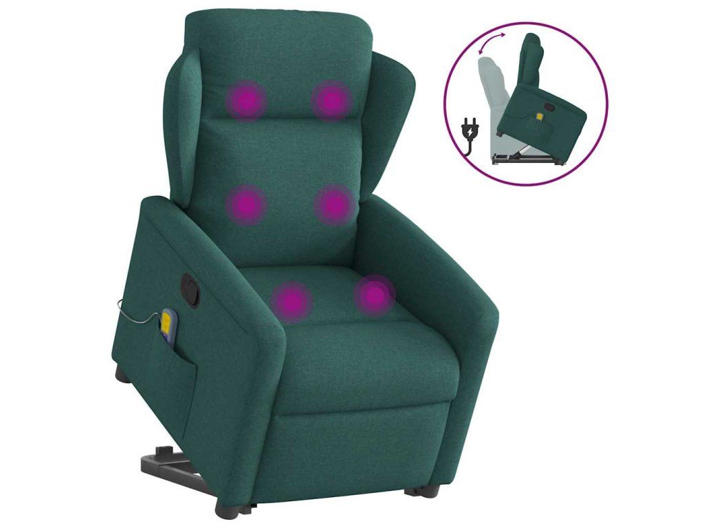 Multidom Zdvíhacie a sklápacie masážne kreslo tmavozelené látka