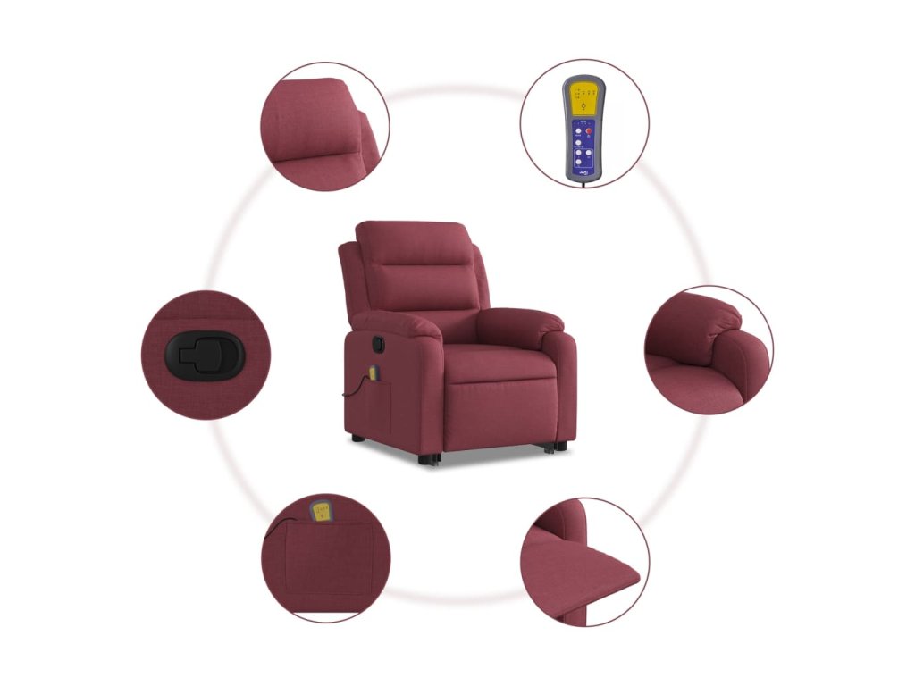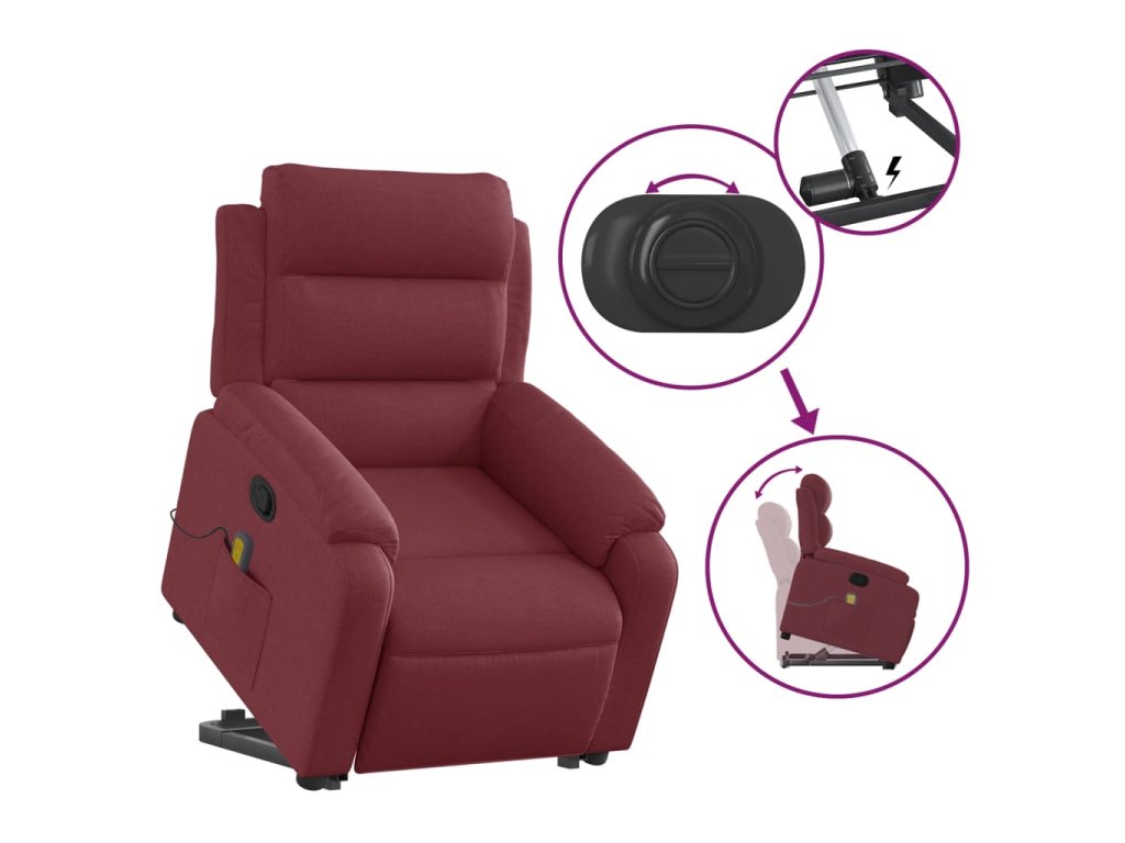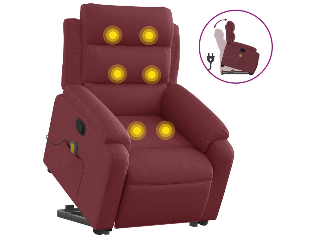 Multidom Zdvíhacie a sklápacie masážne kreslo vínovo-červené látka