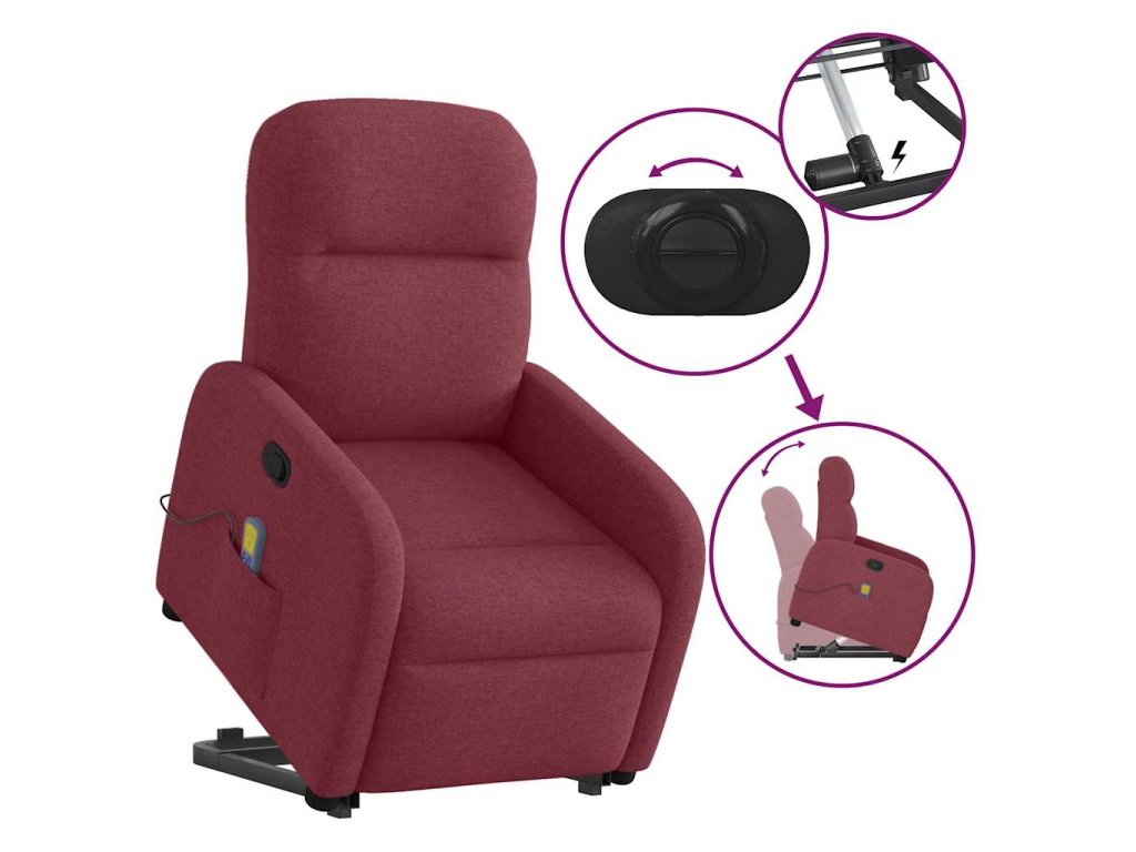 Multidom Zdvíhacie a sklápacie masážne kreslo vínovo-červené látka
