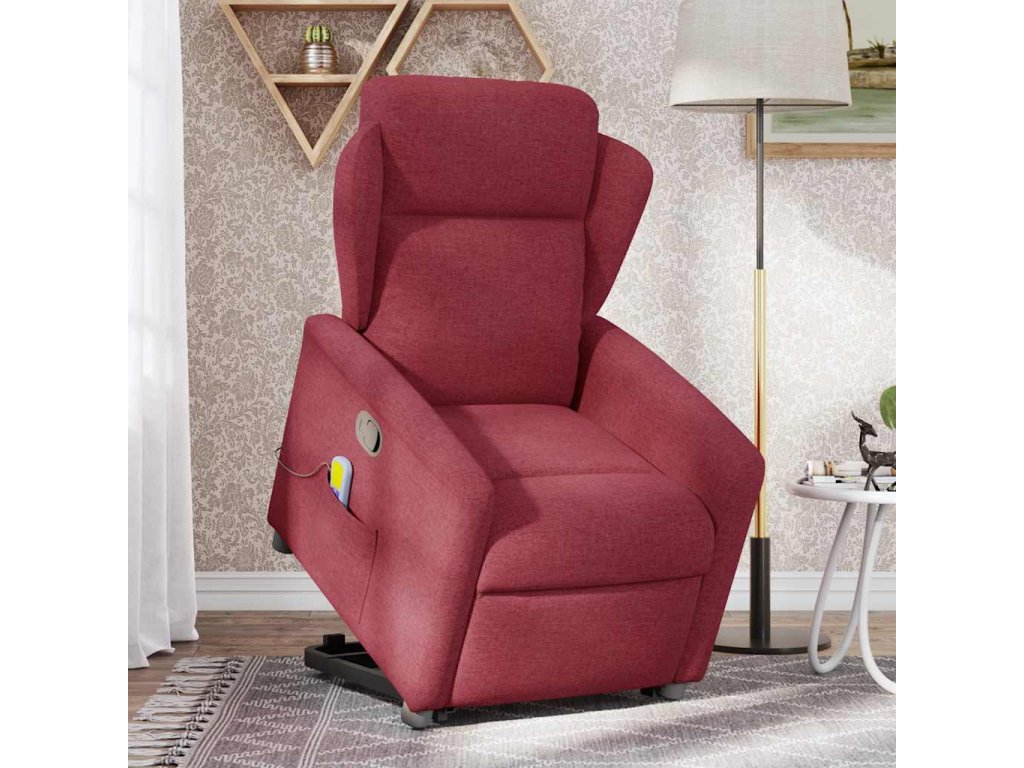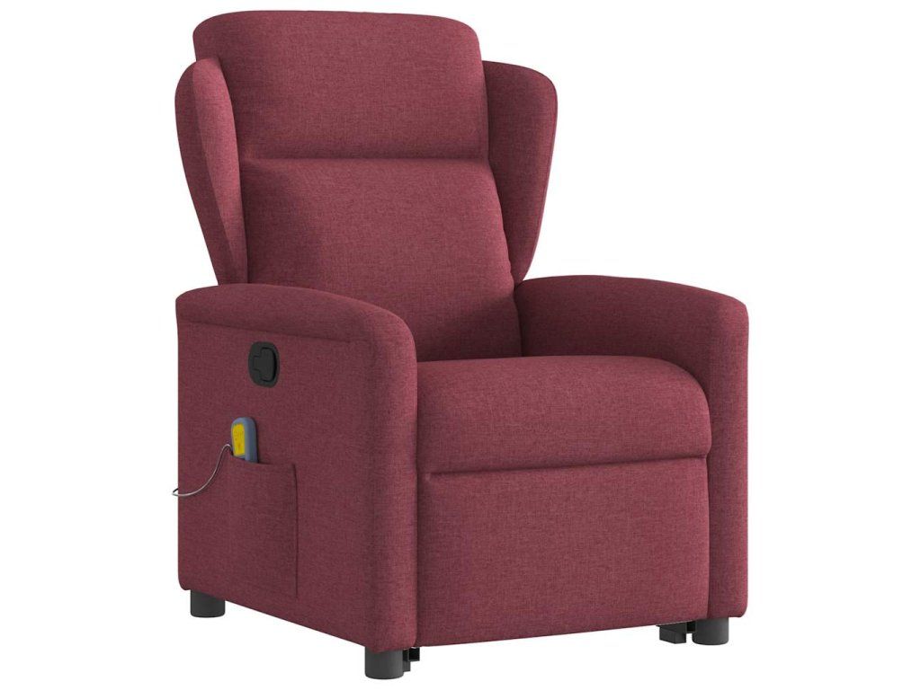 Multidom Zdvíhacie a sklápacie masážne kreslo vínovo-červené látka