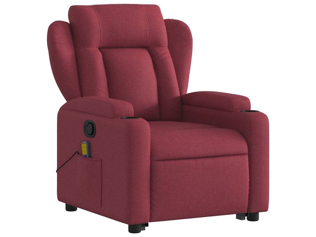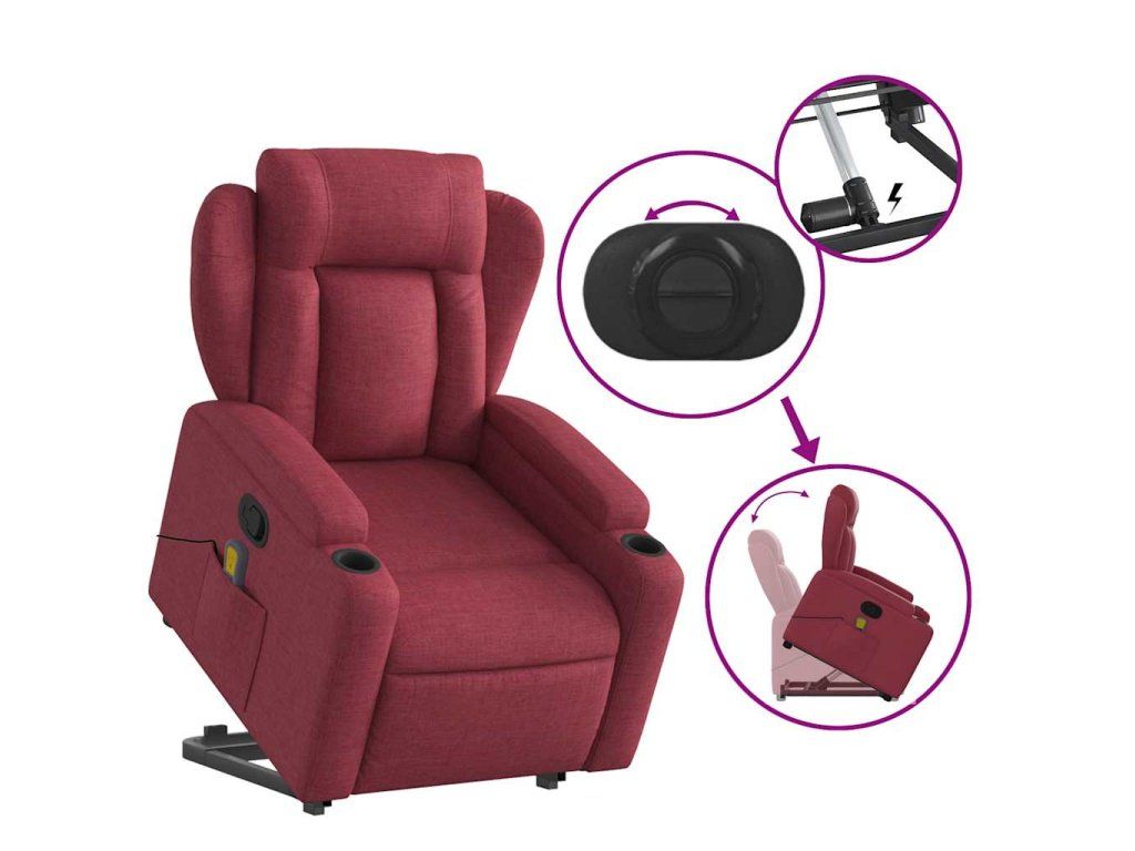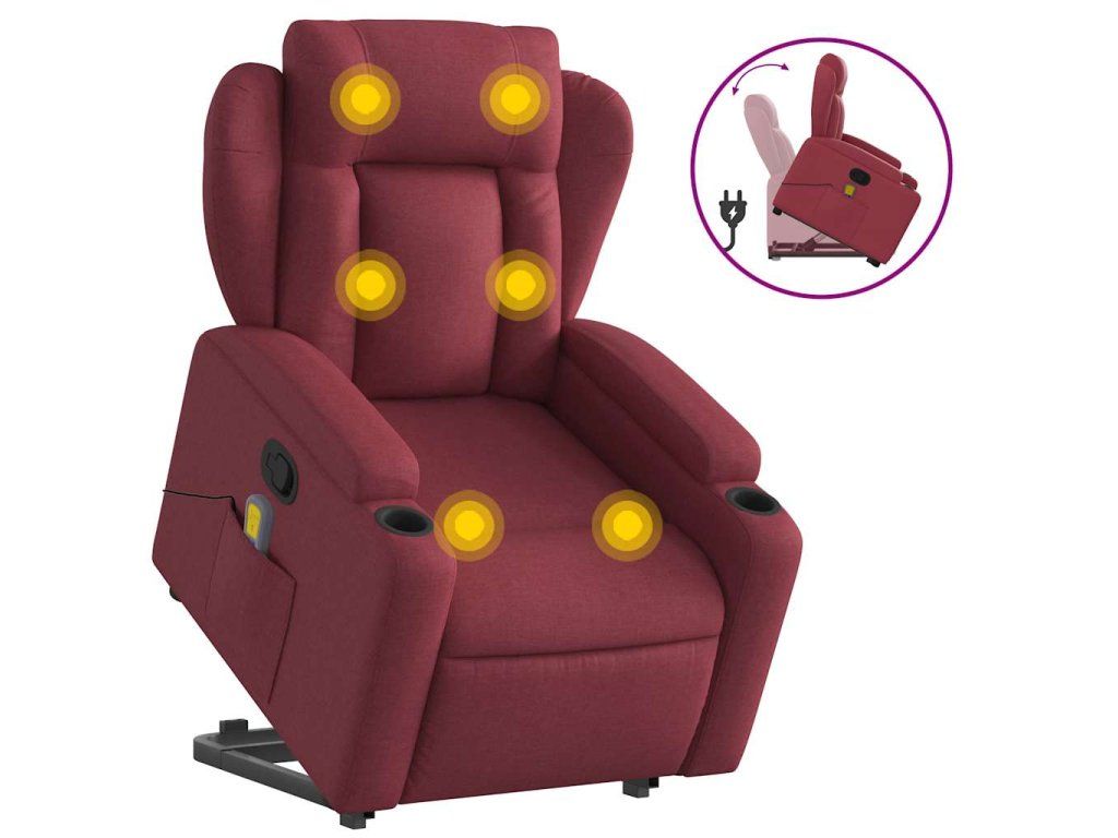 Multidom Zdvíhacie a sklápacie masážne kreslo vínovo-červené látka
