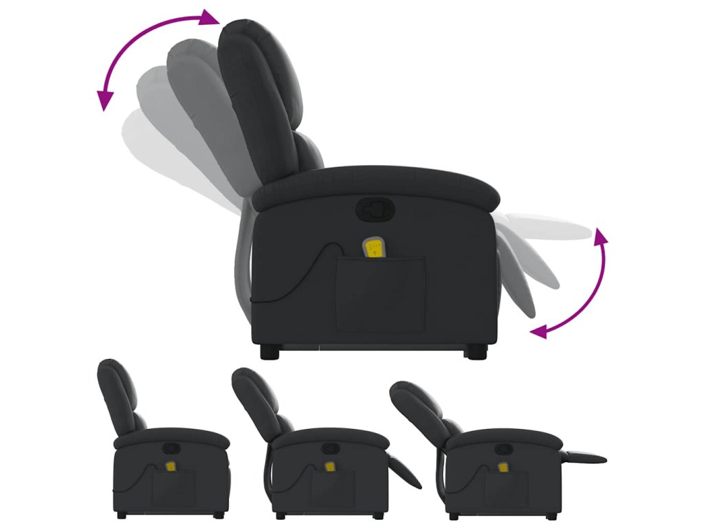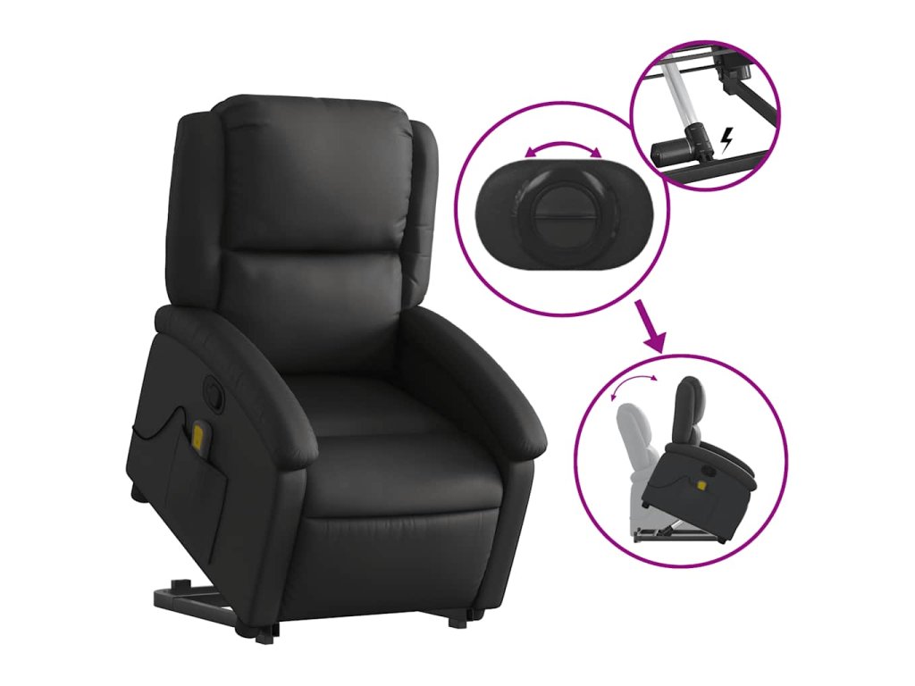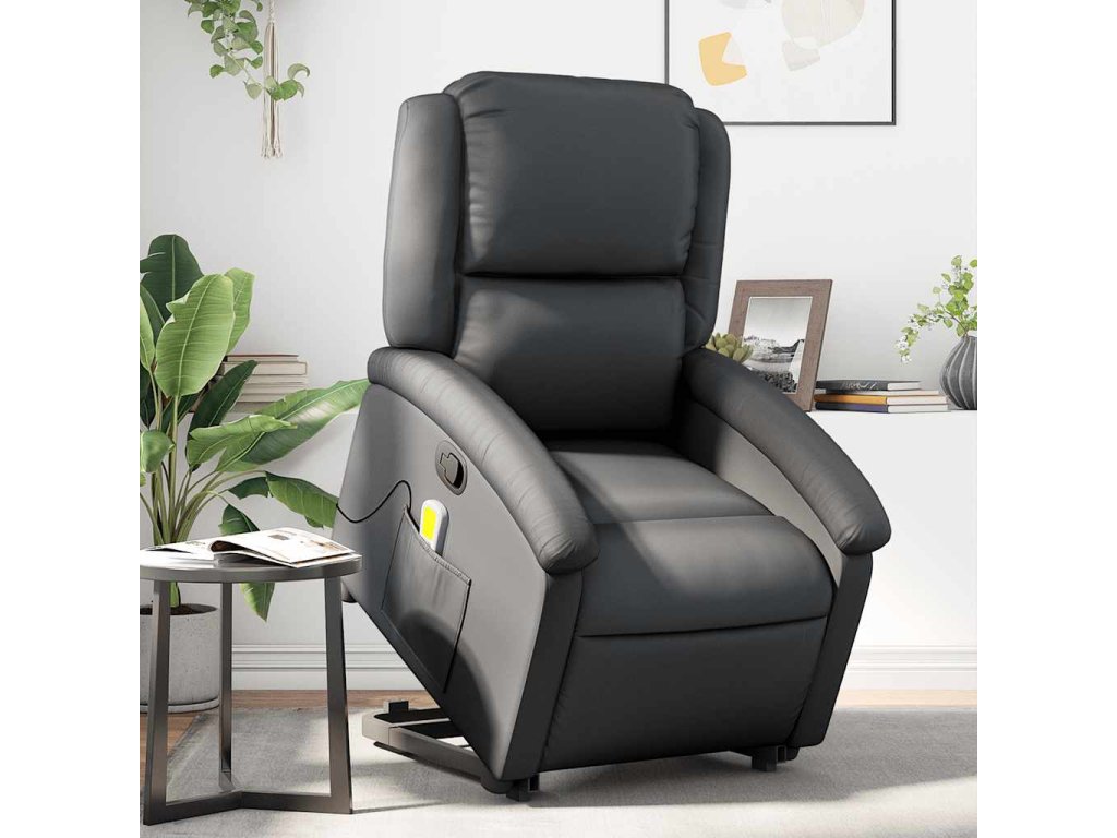 Multidom Zdvíhacie masážne sklápacie kreslo čierne pravá koža