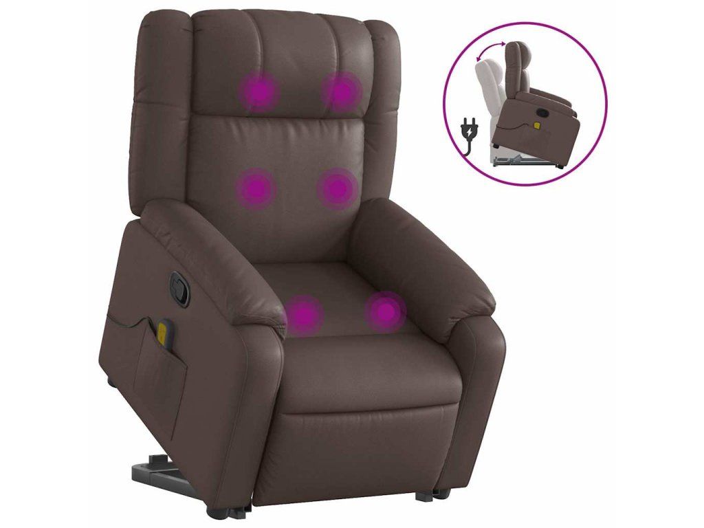 Multidom Zdvíhacie masážne sklápacie kreslo hnedé umelá koža