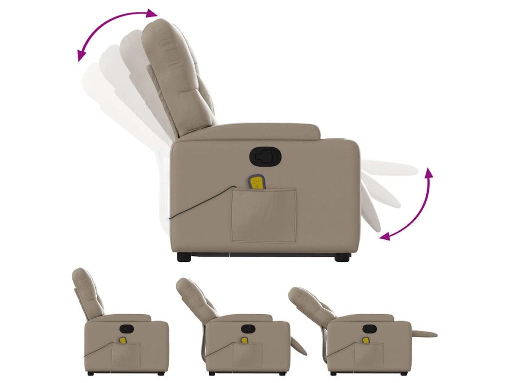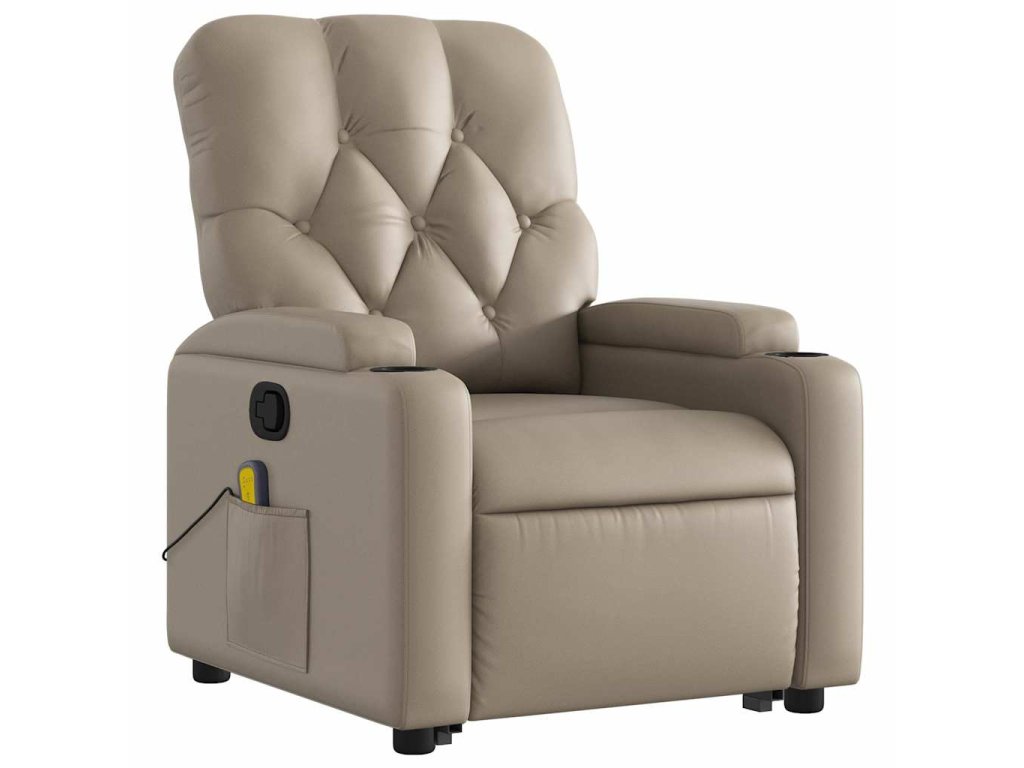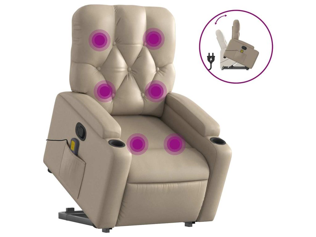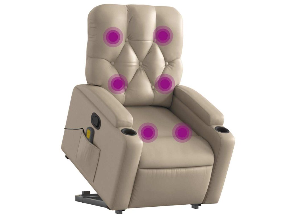 Multidom Zdvíhacie masážne sklápacie kreslo kapučínové umelá koža