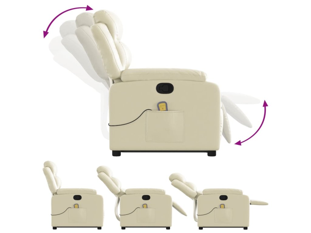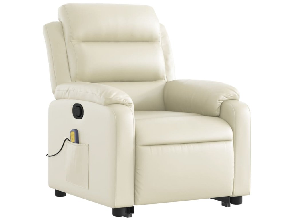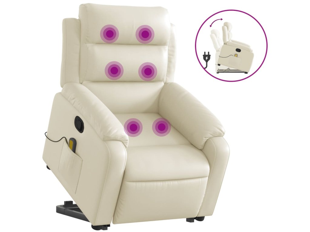 Multidom Zdvíhacie masážne sklápacie kreslo krémové umelá koža