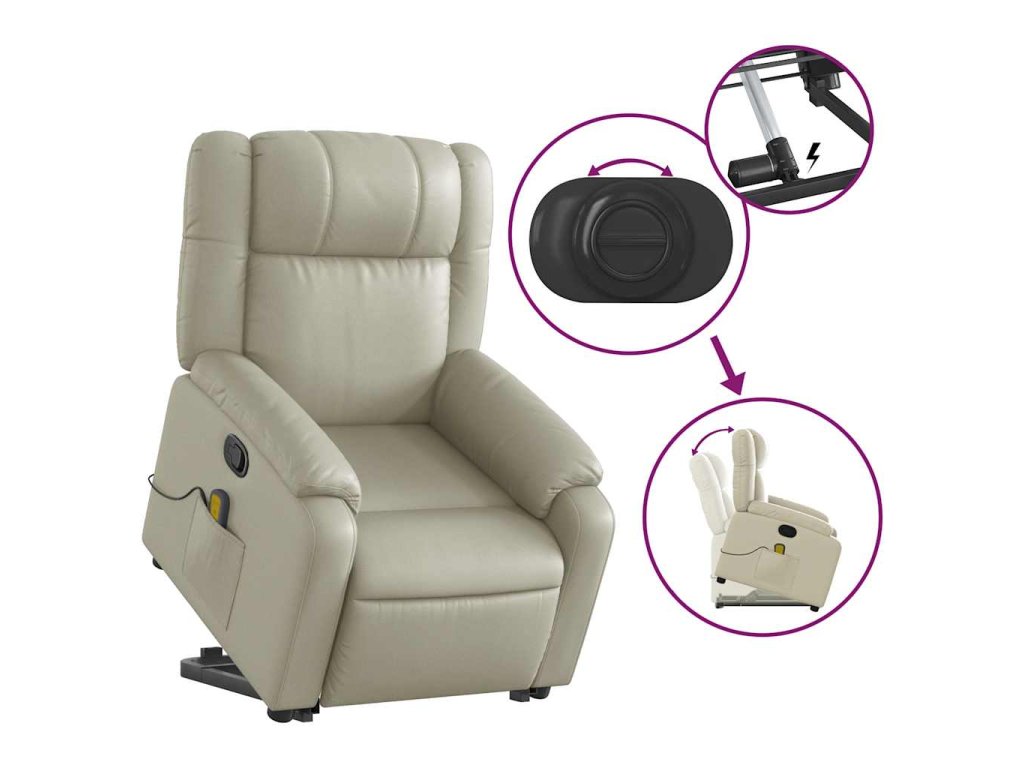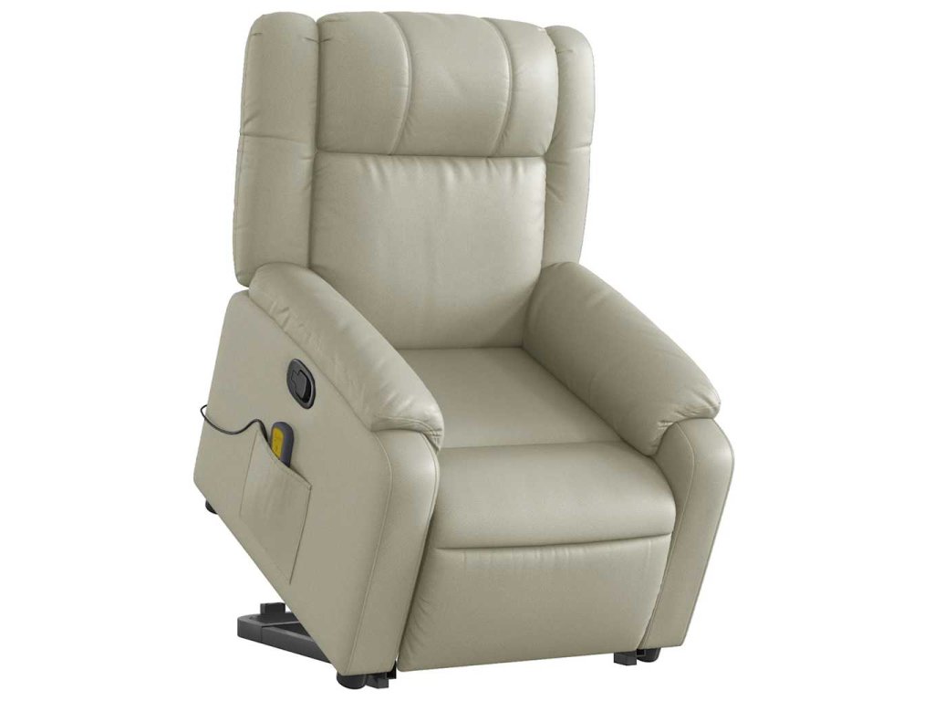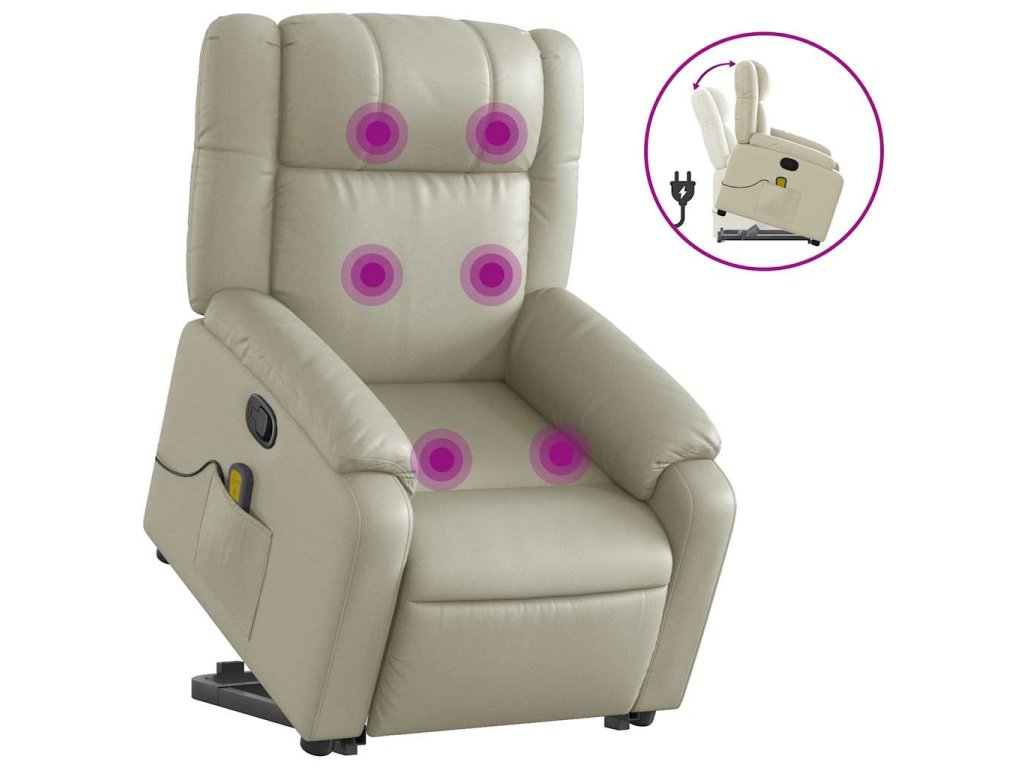Multidom Zdvíhacie masážne sklápacie kreslo krémové umelá koža