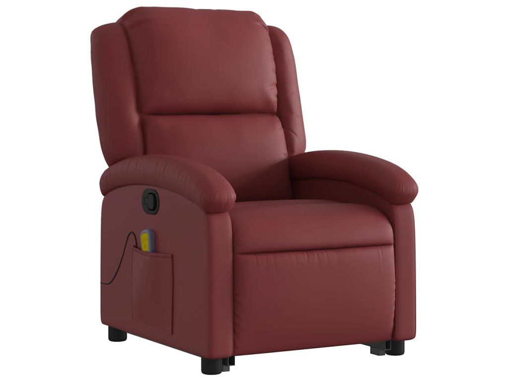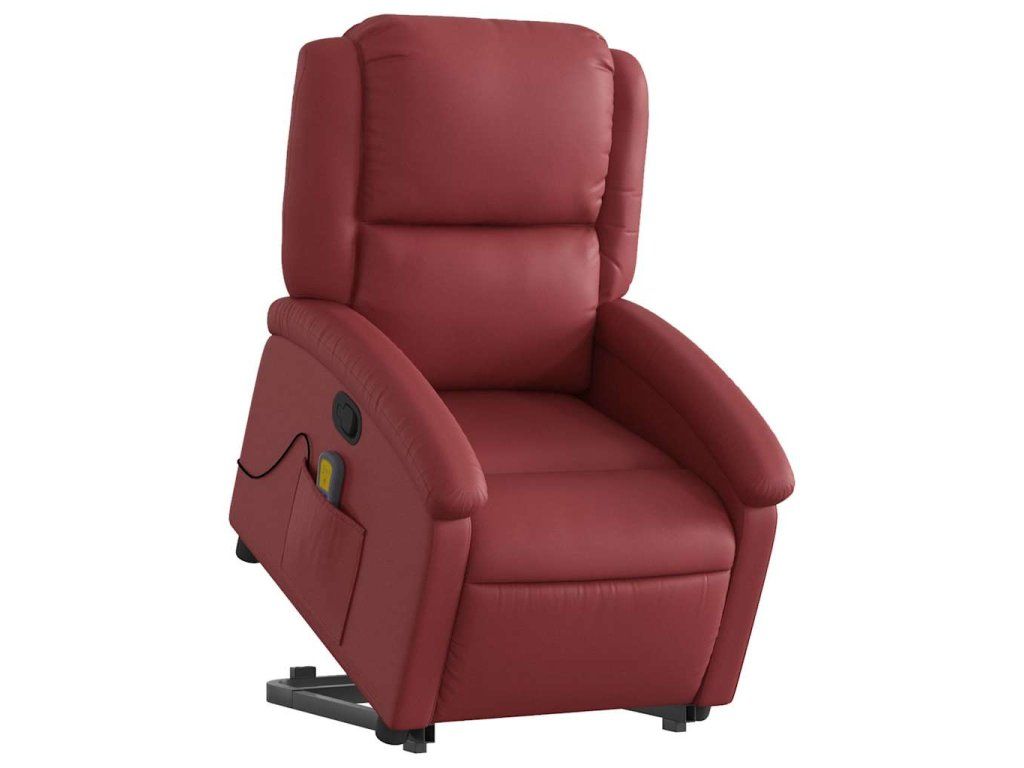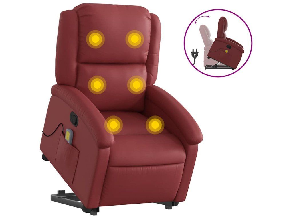Multidom Zdvíhacie masážne sklápacie kreslo vínovočervené umelá koža
