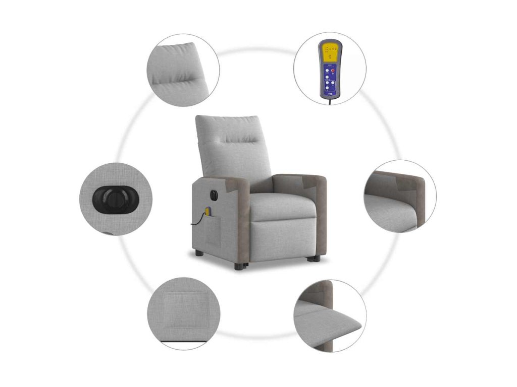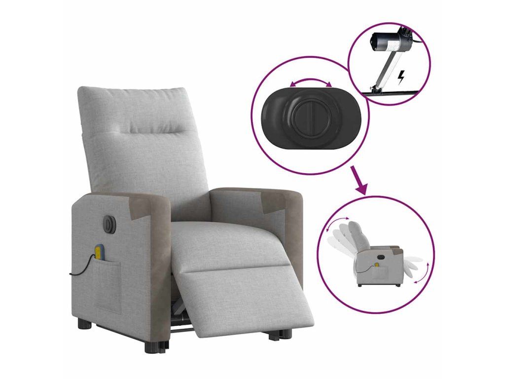 Multidom Zdvíhacie sklápacie elektrické masážne kreslo oblakšedá látka