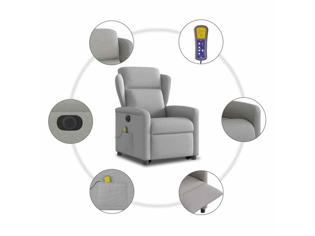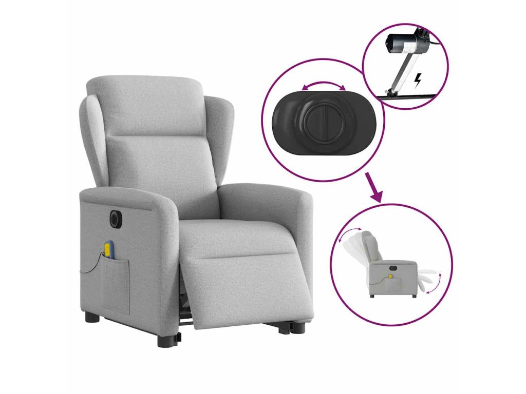 Multidom Zdvíhacie sklápacie elektrické masážne kreslo oblakšedá látka