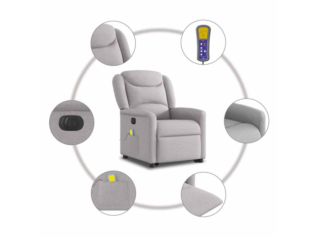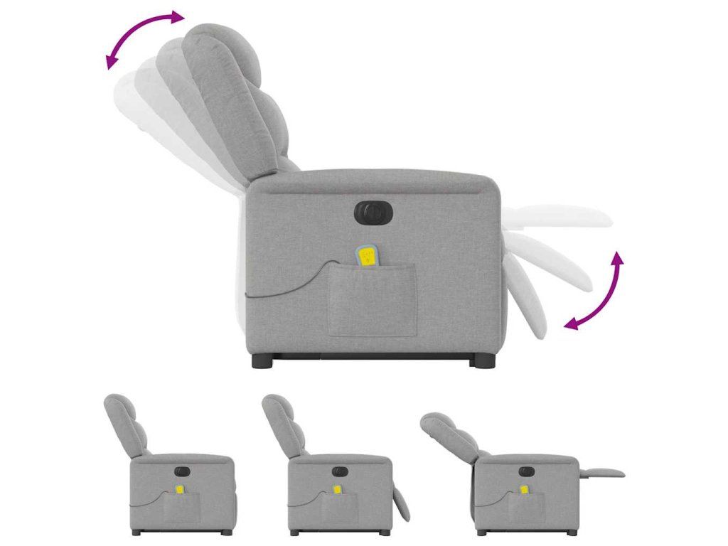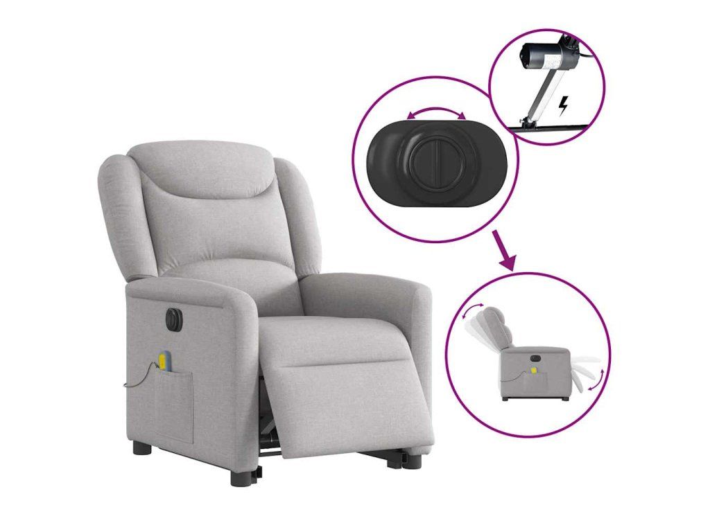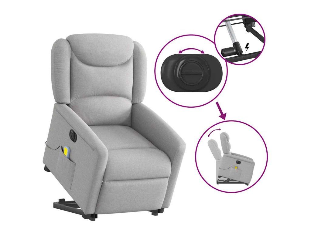 Multidom Zdvíhacie sklápacie elektrické masážne kreslo oblakšedá látka