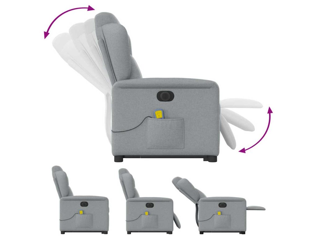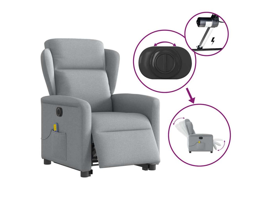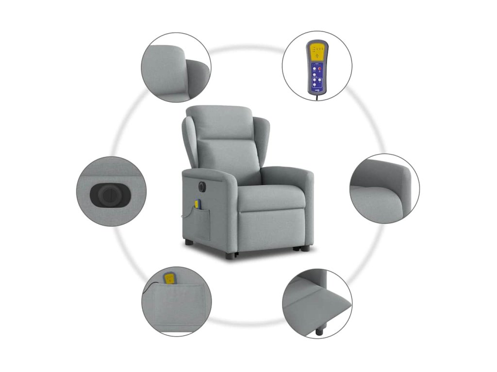 Multidom Zdvíhacie sklápacie elektrické masážne kreslo svetlosivé látka