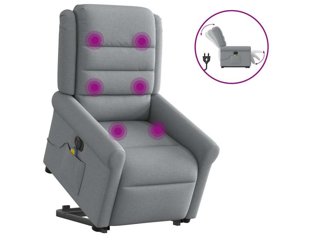 Multidom Zdvíhacie sklápacie elektrické masážne kreslo svetlosivé látka