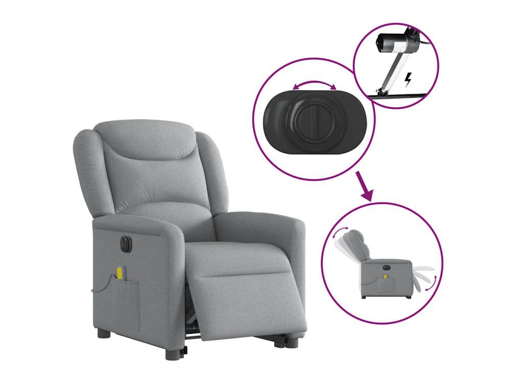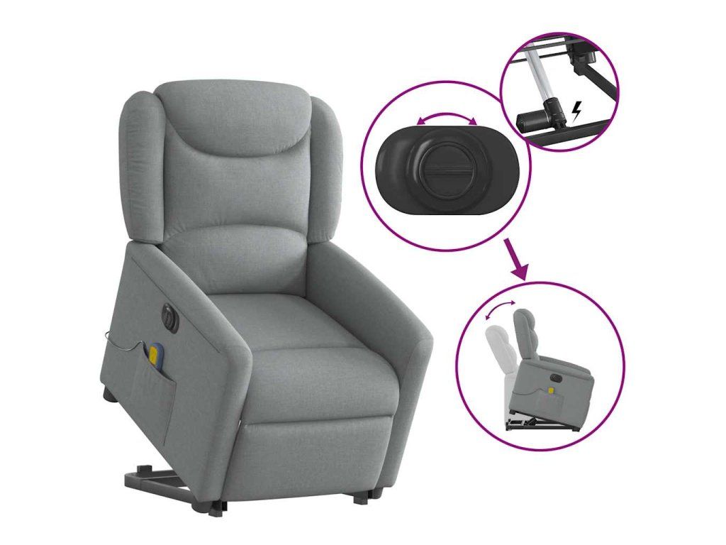 Multidom Zdvíhacie sklápacie elektrické masážne kreslo svetlosivé látka