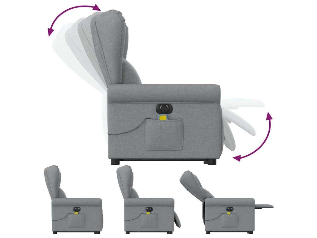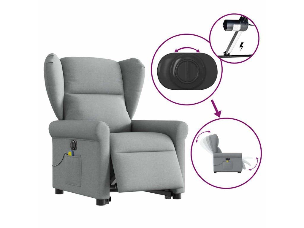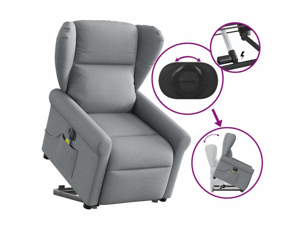 Multidom Zdvíhacie sklápacie elektrické masážne kreslo svetlosivé látka