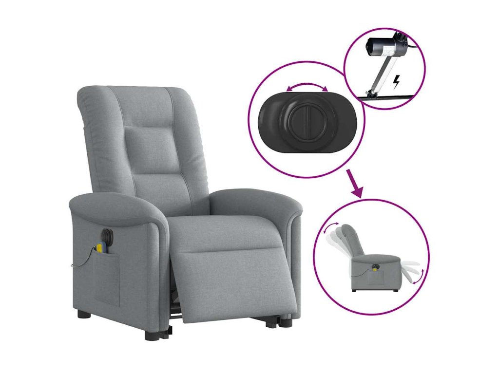 Multidom Zdvíhacie sklápacie elektrické masážne kreslo svetlosivé látka