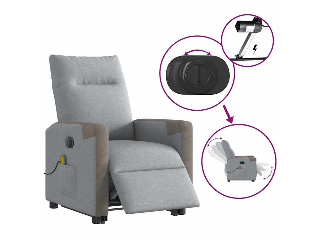 Multidom Zdvíhacie sklápacie elektrické masážne kreslo svetlosivé látka