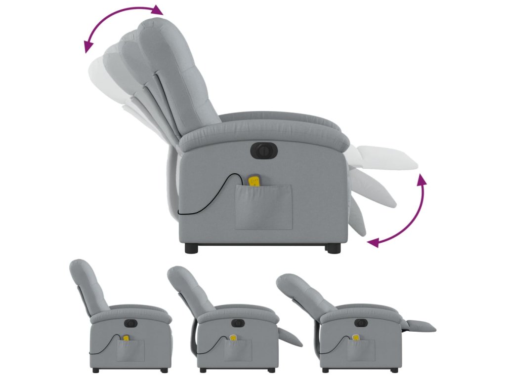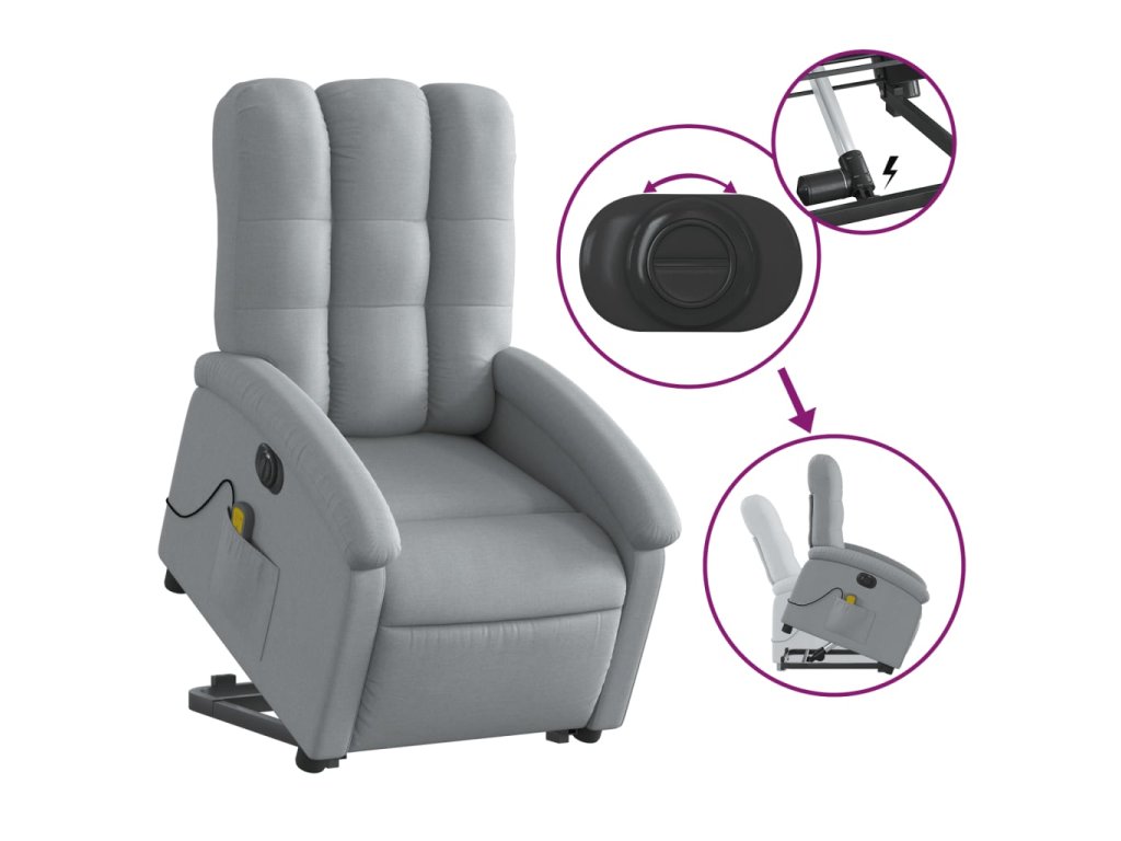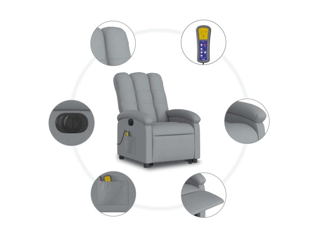 Multidom Zdvíhacie sklápacie elektrické masážne kreslo svetlosivé látka