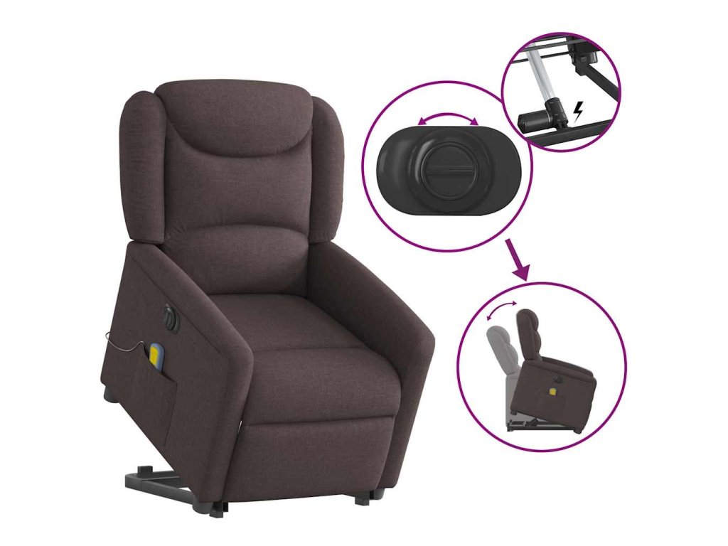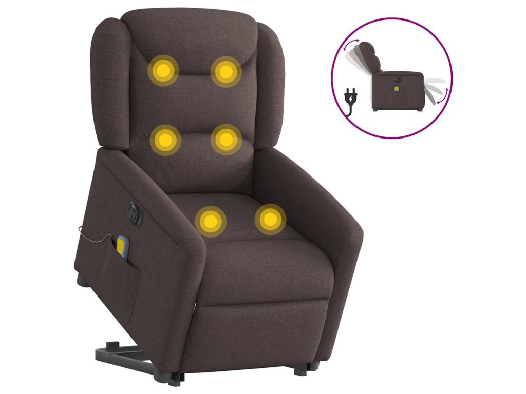 Multidom Zdvíhacie sklápacie elektrické masážne kreslo tmavohnedé látka