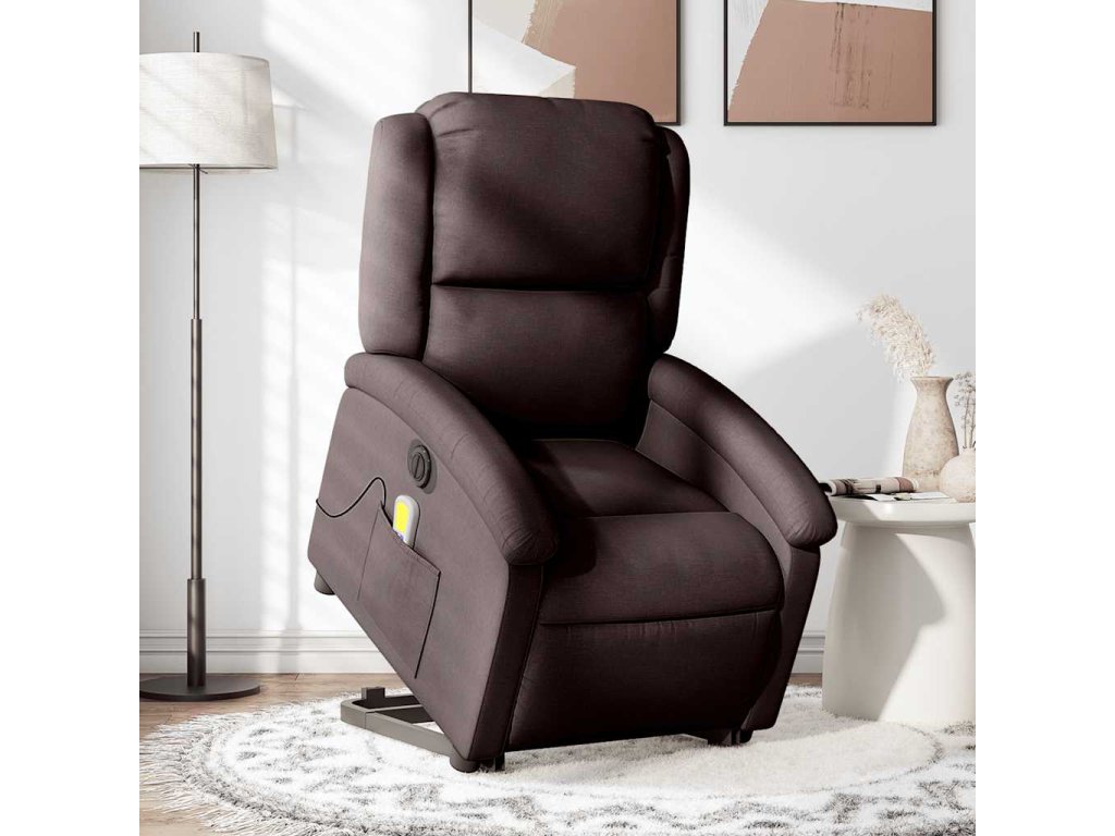 Multidom Zdvíhacie sklápacie elektrické masážne kreslo tmavohnedé látka