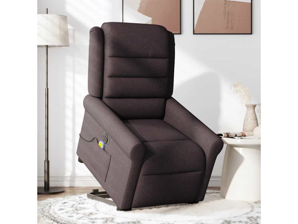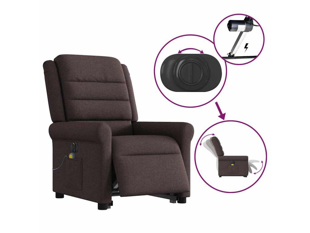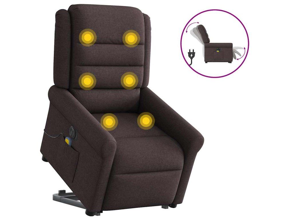 Multidom Zdvíhacie sklápacie elektrické masážne kreslo tmavohnedé látka