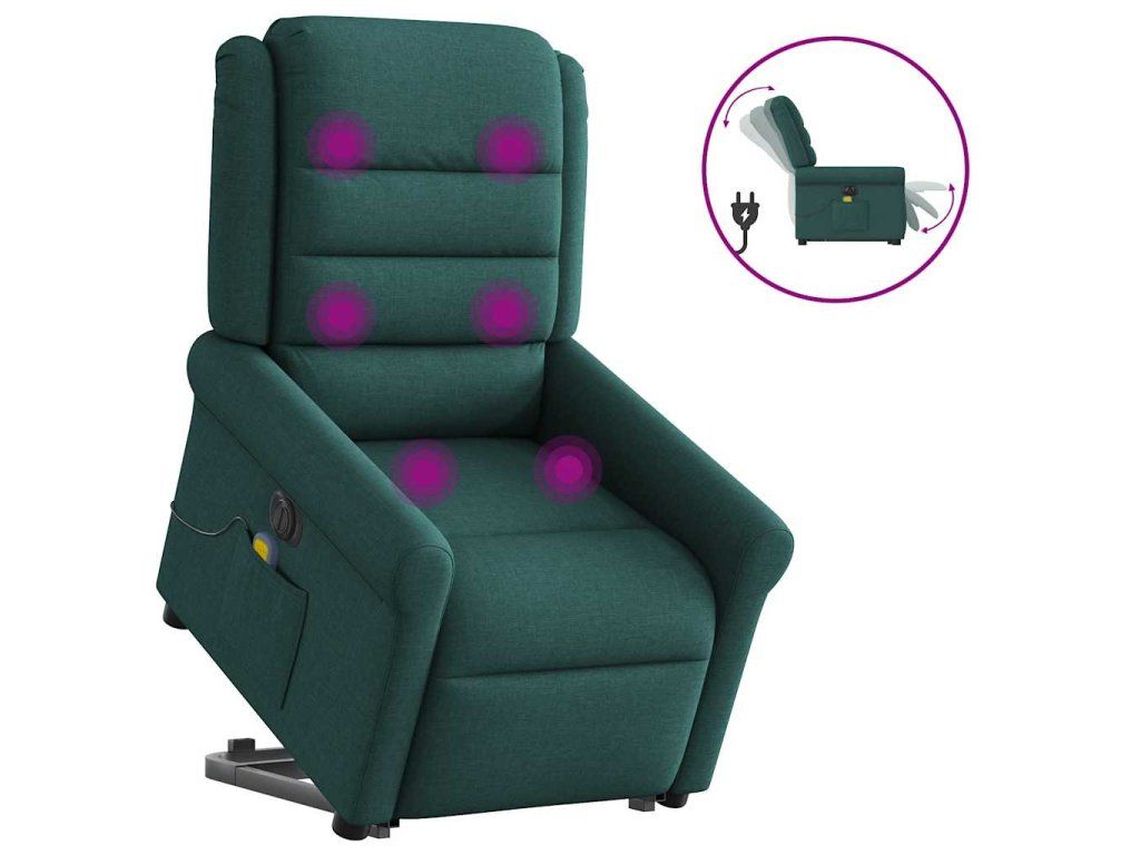 Multidom Zdvíhacie sklápacie elektrické masážne kreslo tmavozelené látka
