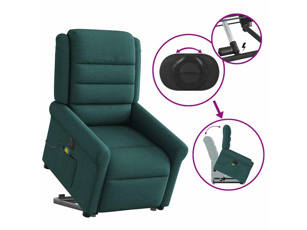 Multidom Zdvíhacie sklápacie elektrické masážne kreslo tmavozelené látka