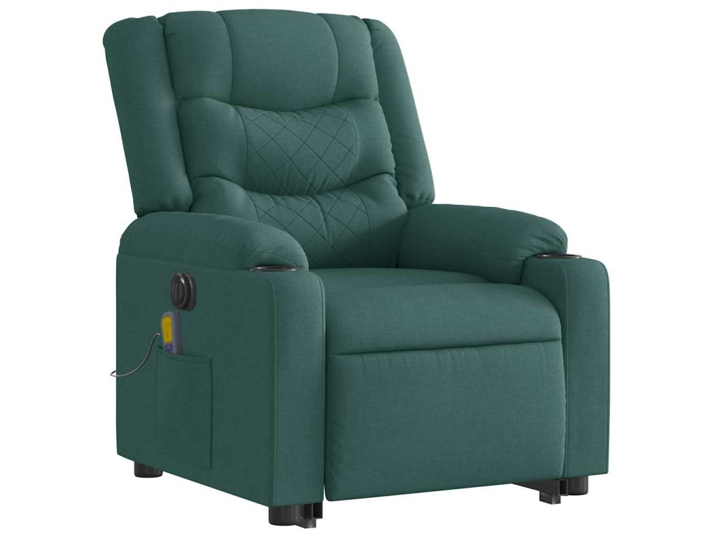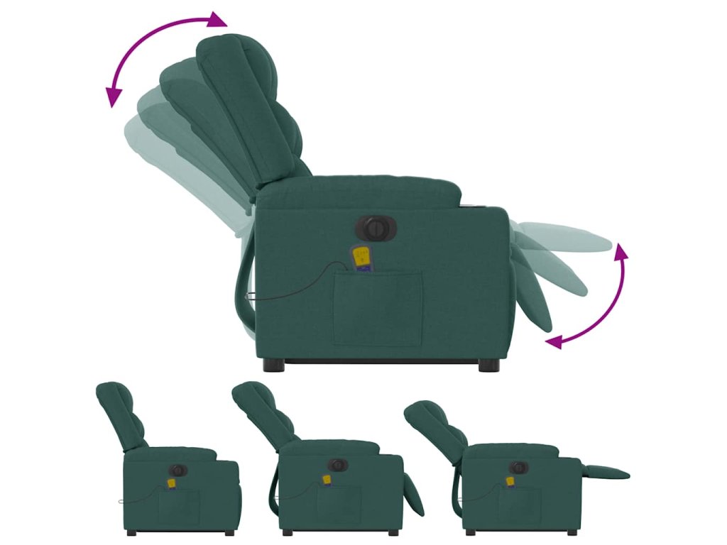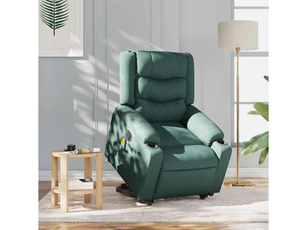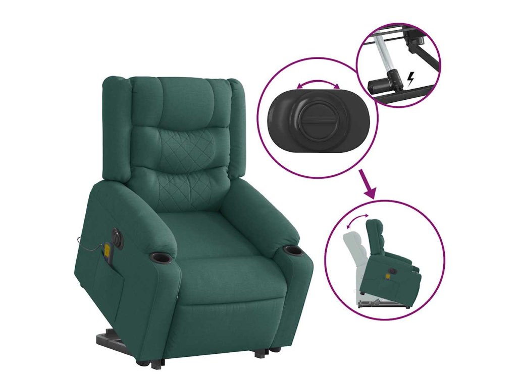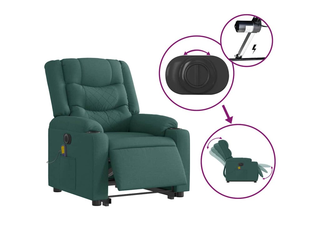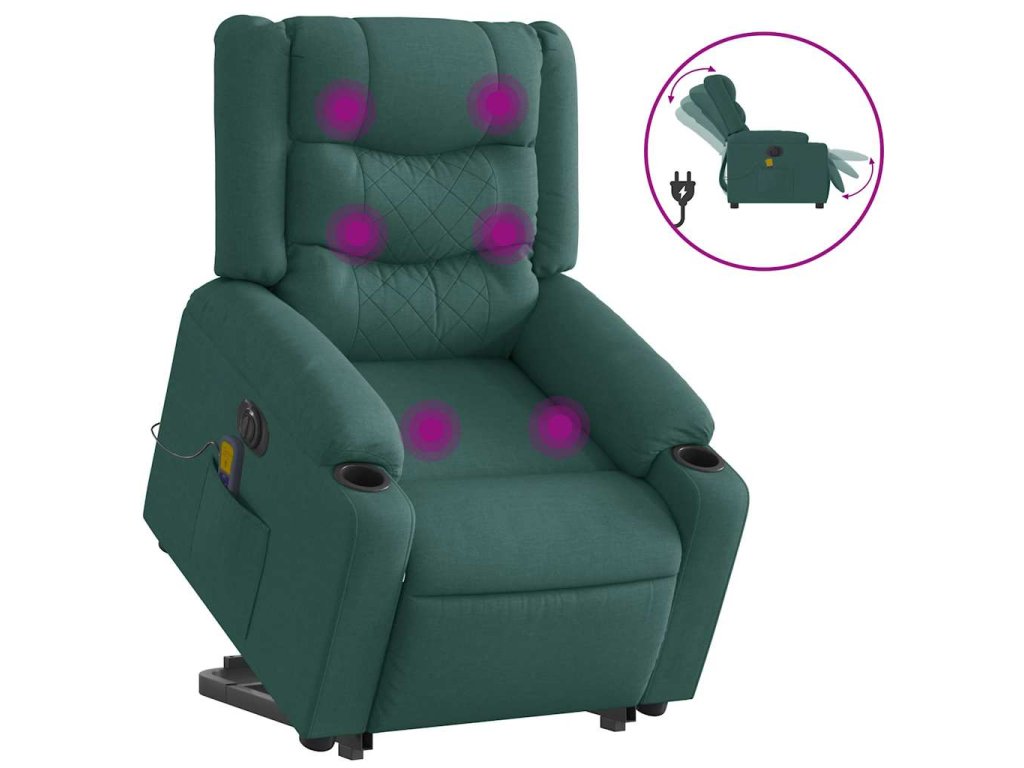 Multidom Zdvíhacie sklápacie elektrické masážne kreslo tmavozelené látka