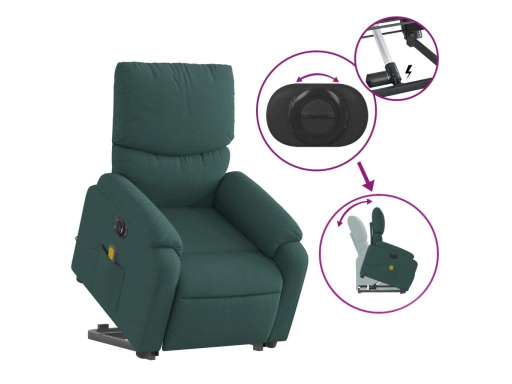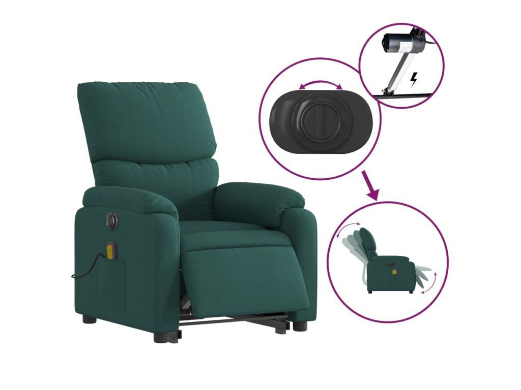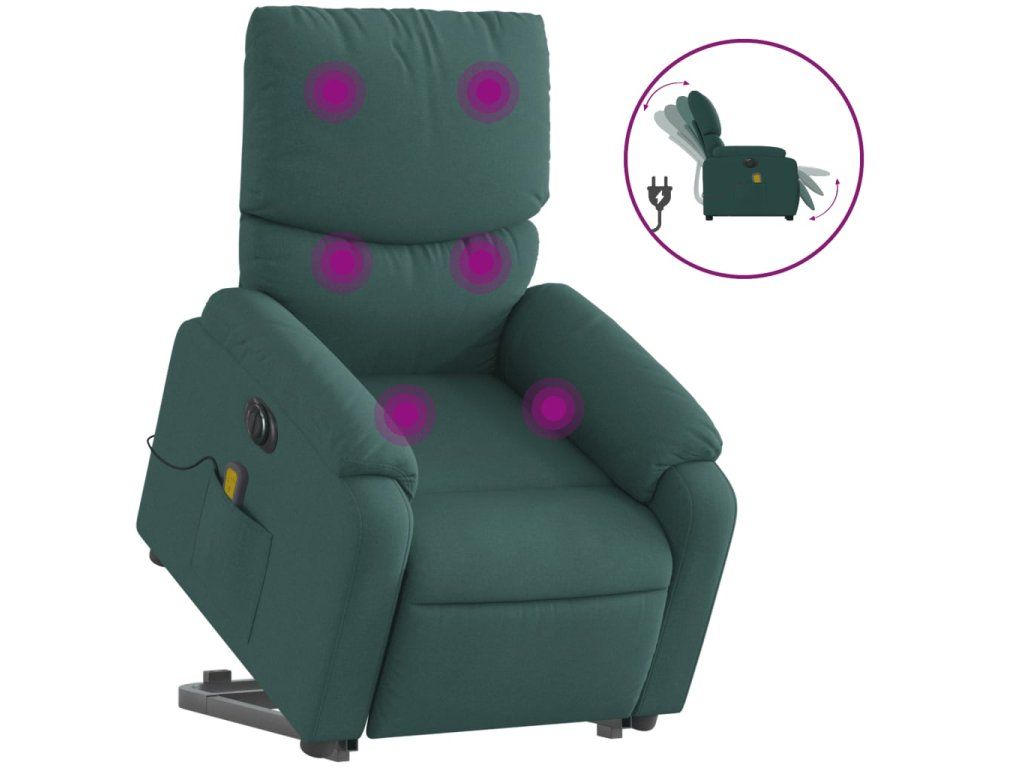 Multidom Zdvíhacie sklápacie elektrické masážne kreslo tmavozelené látka
