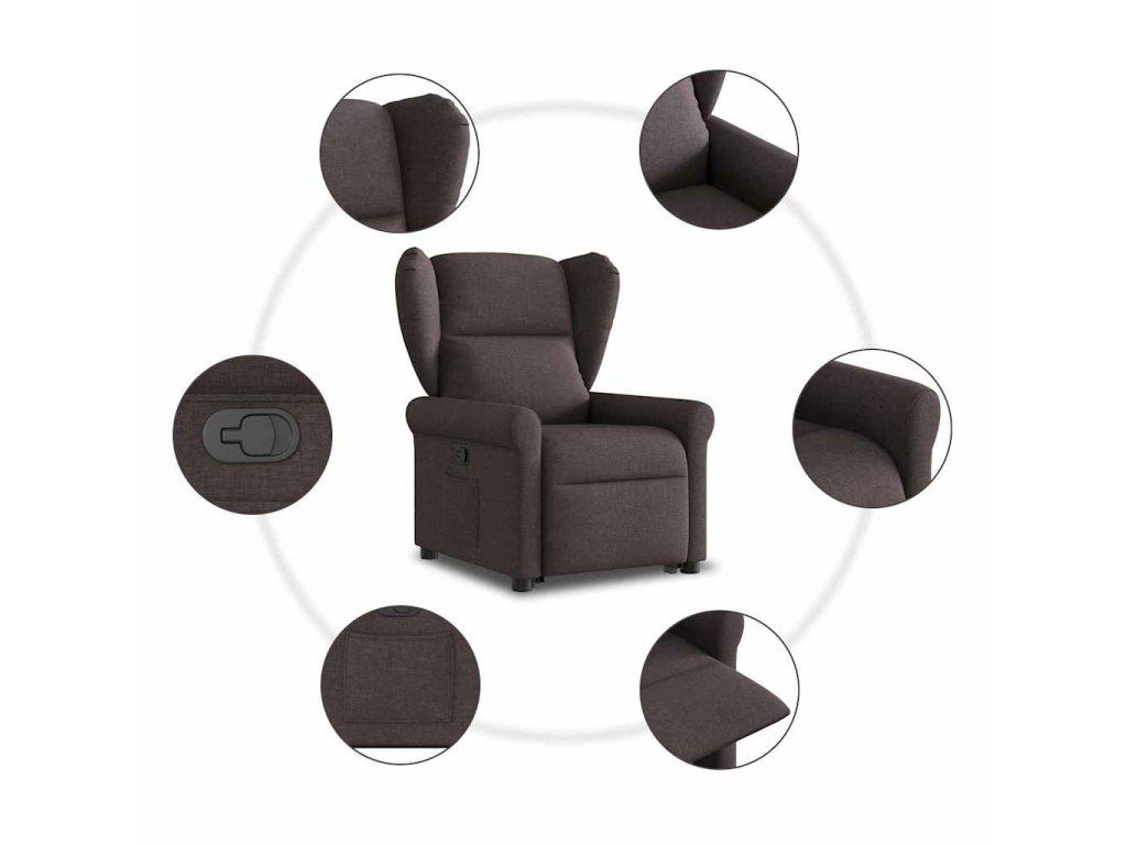Multidom Zdvíhacie sklápacie kreslo tmavohnedé látka