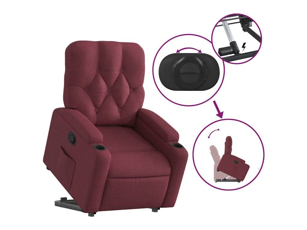 Multidom Zdvíhacie sklápacie kreslo vínovo červené látka