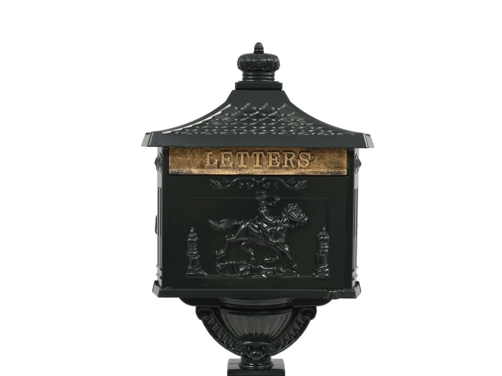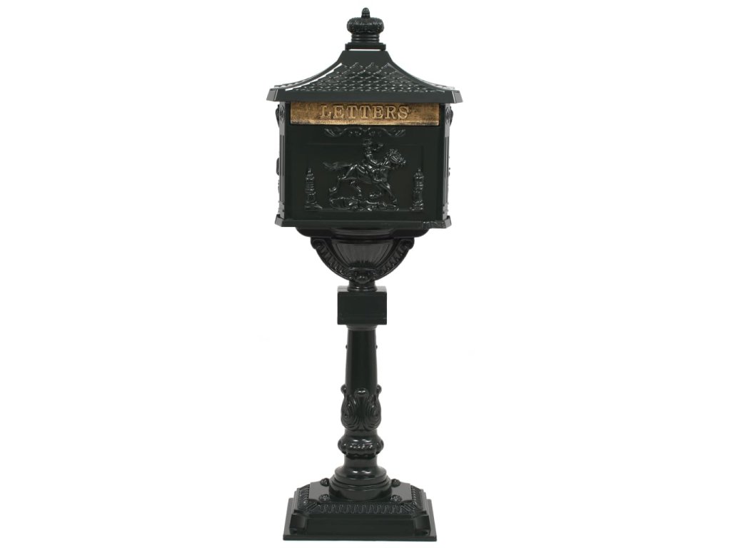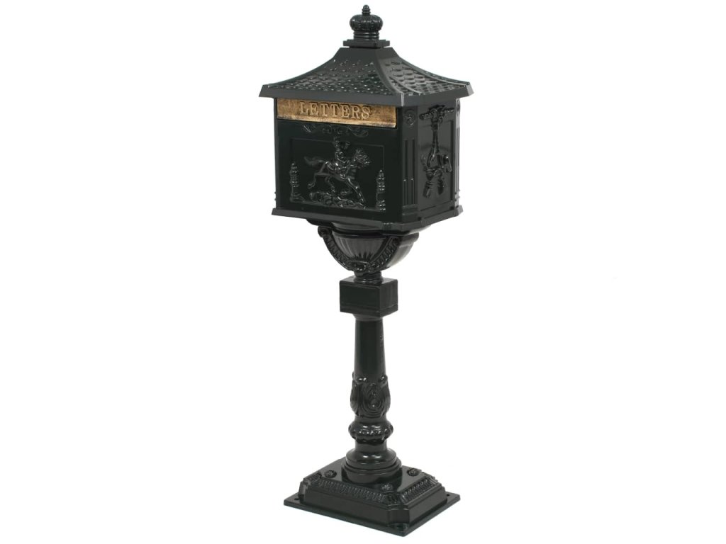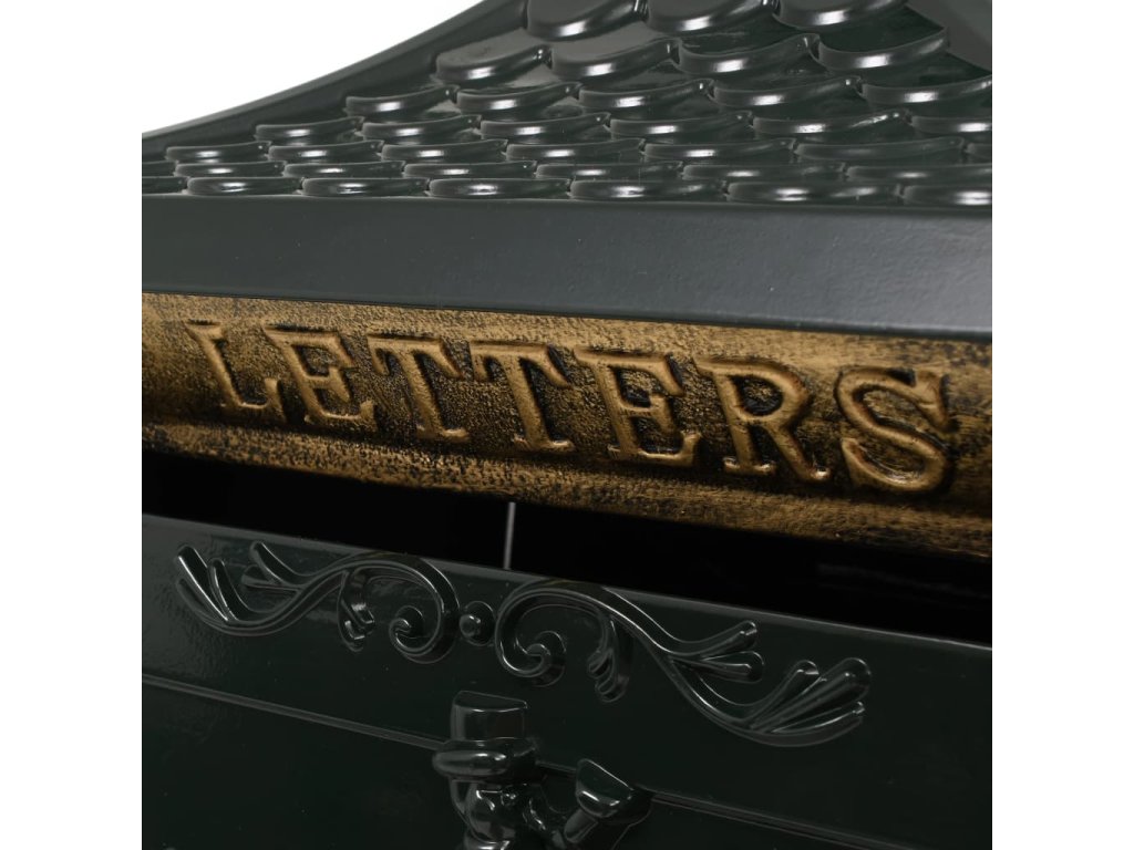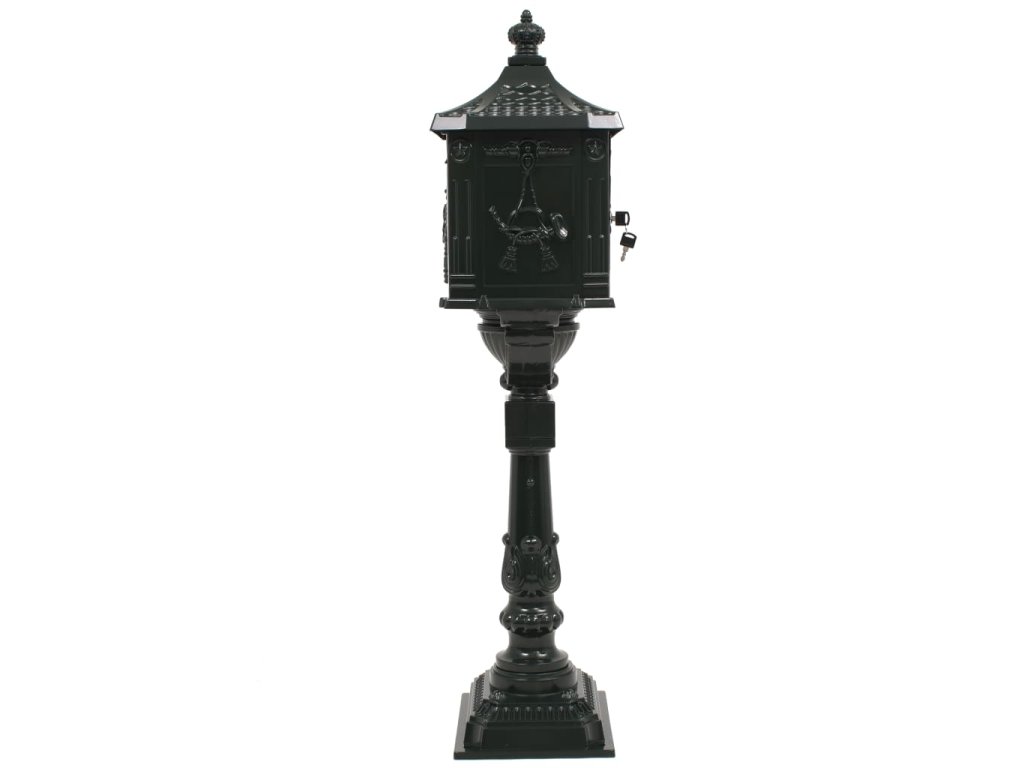 Táto stĺpová poštová schránka je navrhnutá so širokým priečinkom, ktorý má klapku pre ochránenie obsahu vo vnútri. Taktiež má uzamykateľné dvierka (pre každé dvierka sú pribalené 2 kľúče) na jednoduché vytiahnutie pošty. Poštová schránka je vyrobená z liateho hliníka odolného voči vplyvom počasia a hrdzi, vďaka čomu ju veľmi vhodná pre vonkajšie použitie. Je ozdobená množstvom nádherných dekoratívnych detailov vo vintage štýle a bude pútať pozornosť na vašej príjazdovej ceste alebo vchode.