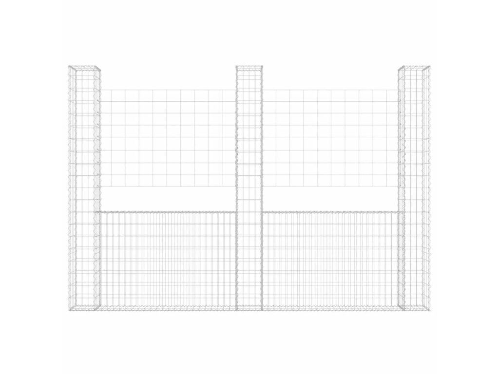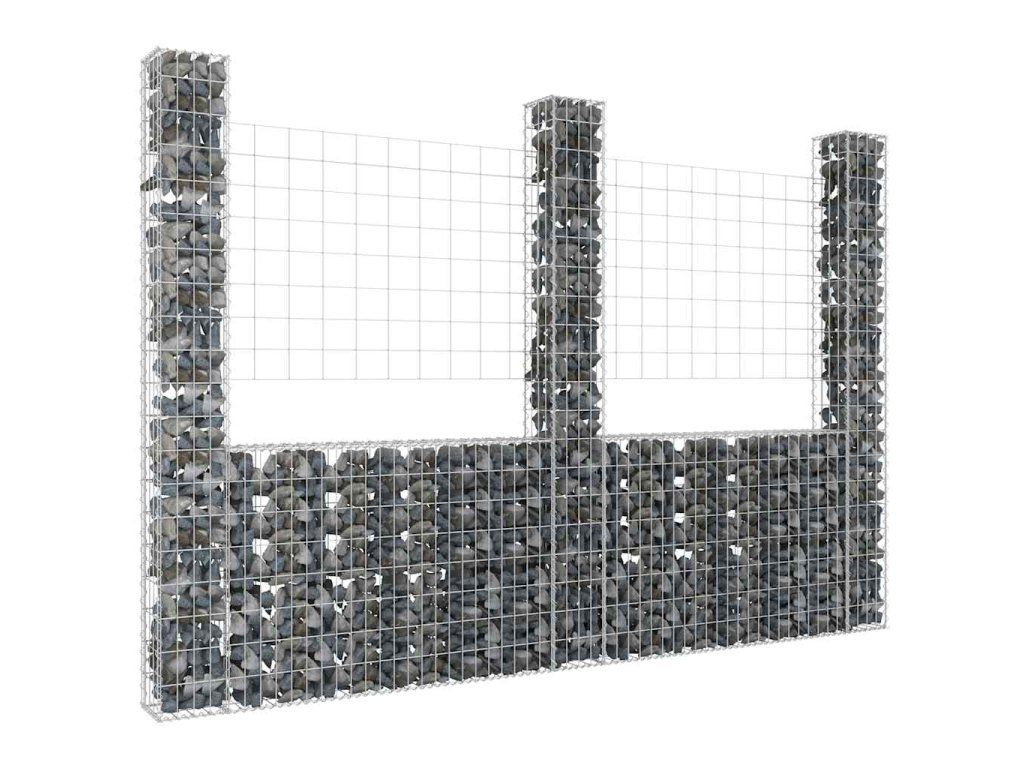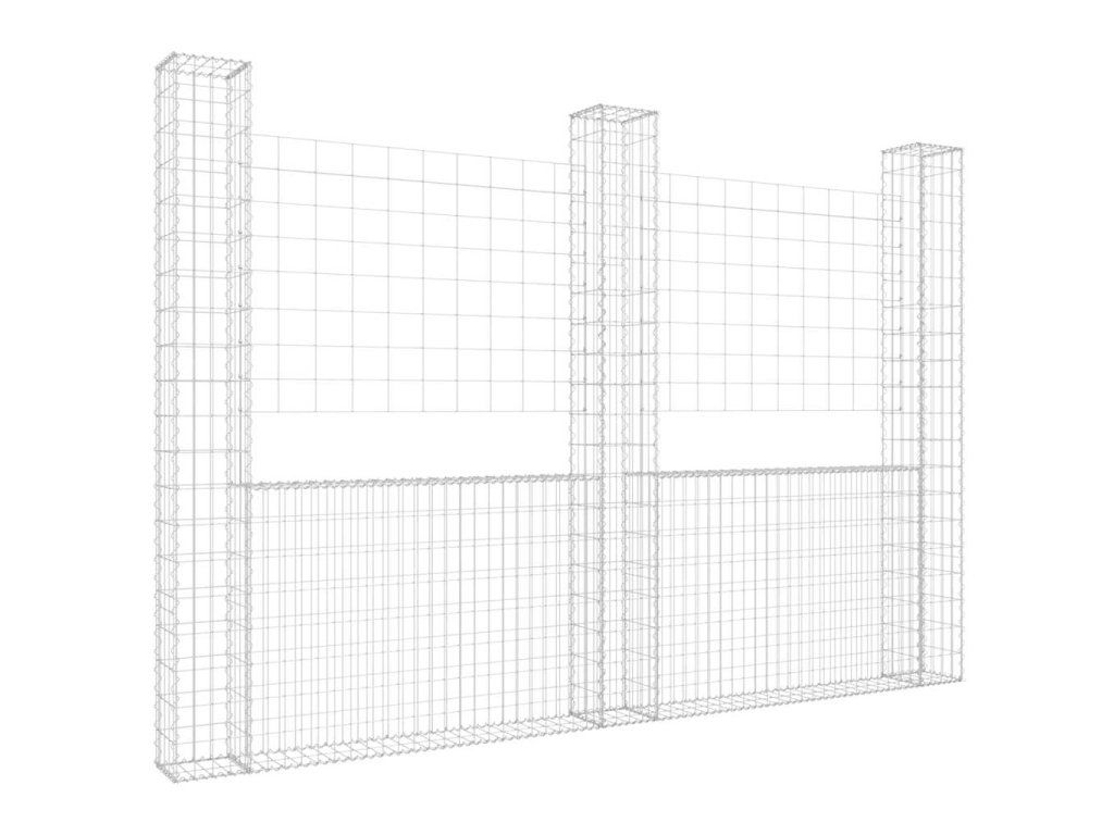 Multidom Železný gabiónový kôš v tvare U s 3 stĺpmi 260x20x200 cm