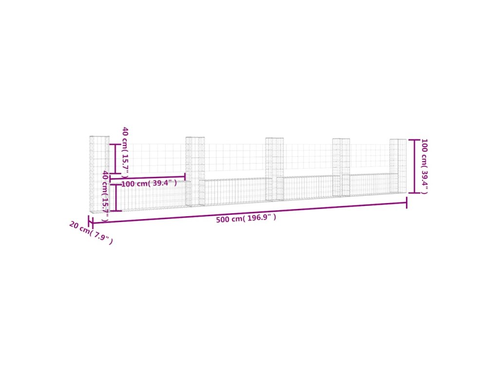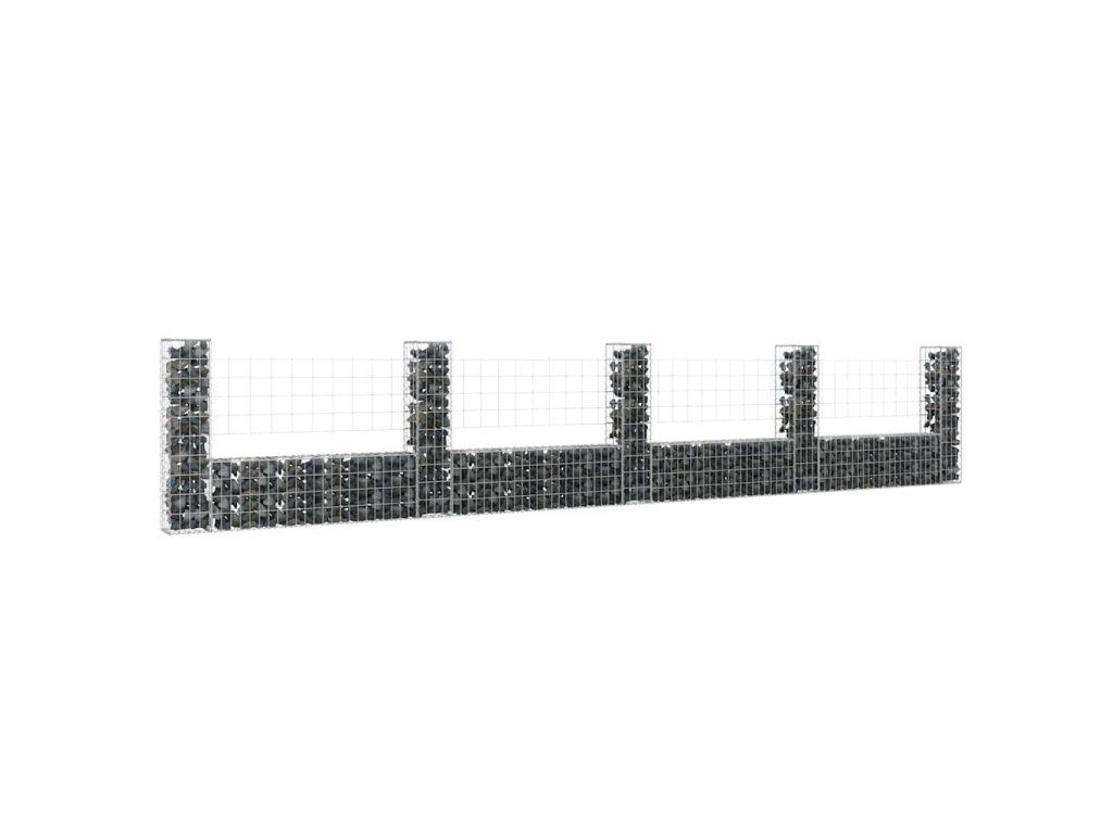 Multidom Železný gabiónový kôš v tvare U s 5 stĺpmi 500x20x100 cm