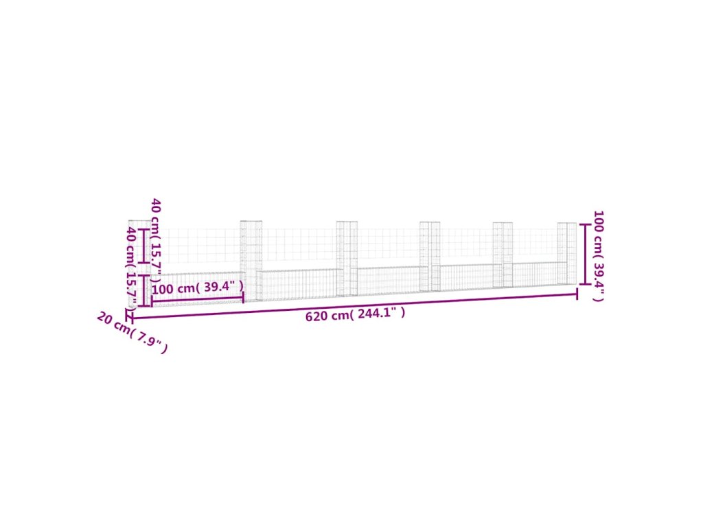 Multidom Železný gabiónový kôš v tvare U so 6 stĺpmi 620x20x100 cm