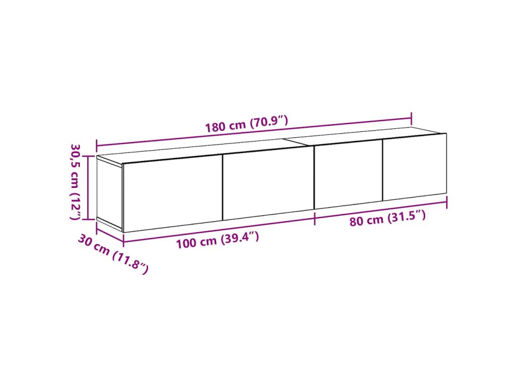 - 1 x TV skrinka: 80 x 30 x 30 cm (D x Š x V)