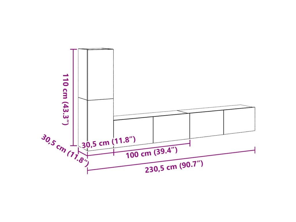 Táto súprava TV nábytku na stenu ponúka elegantné a moderné úložné riešenie pre vašu obývačku. Navrhnutá tak, aby sa hodila do každého súčasného prostredia, zdôrazňuje jednoduchosť, funkčnosť a čisté línie. Obsahuje úložné priehradky a police, ktoré vám pomôžu vystaviť aj skryť vaše zábavné veci. Jej jednoduchý obdĺžnikový dizajn vytvára otvorenejšiu atmosféru vo vašom domove a poskytuje potrebné úložné riešenia.