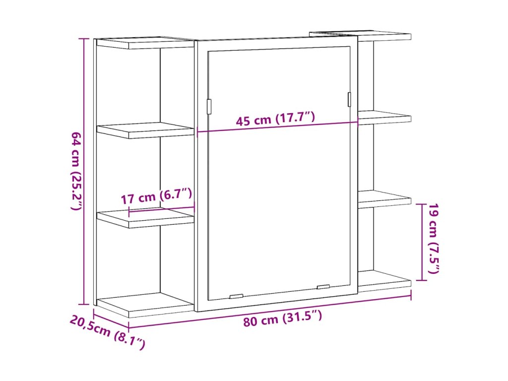 - Rozmery: 80 x 20,5 x 64 cm (Š x H x V)