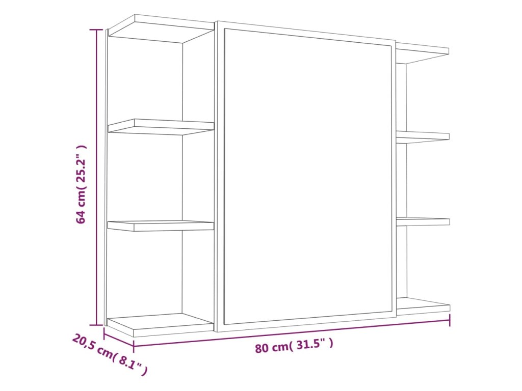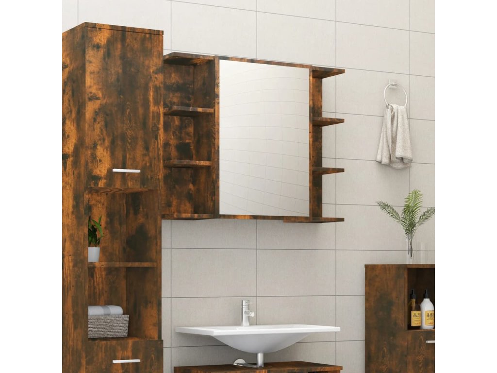 Multidom Zrkadlová skrinka dymový dub 80x20,5x64 cm spracované drevo