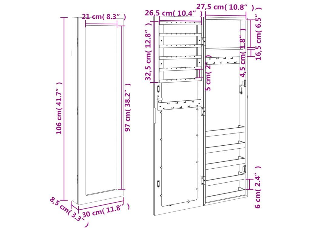 Multidom Zrkadlová skrinka na šperky nástenná 30x8,5x106 cm